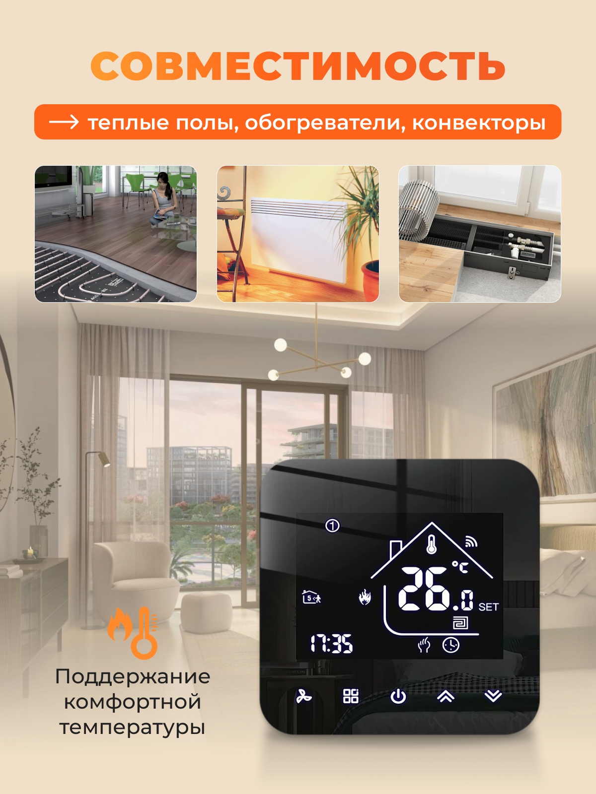 Умный терморегулятор Tuya с Wi-Fi для электрического теплого пола и конвекторов с дистанционным управлением для Google Home, Alexa, Tuya интересное: