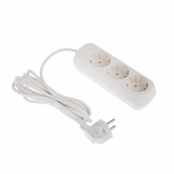 Удлинитель 3 розетки, 1.7 м, 10 А, 2200 Вт, ПВС 2х0.75 мм2, без з/к, белый
