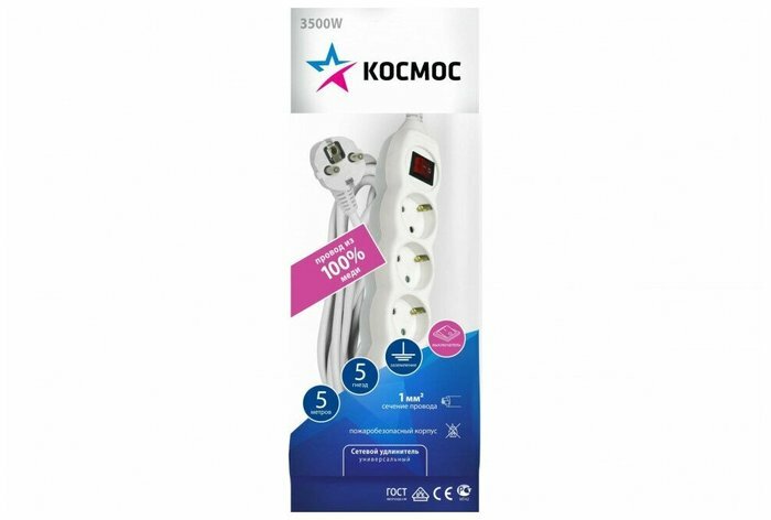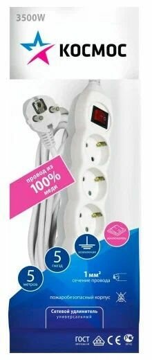 Удлинитель Космос Электро Космос 3х5м с заземл. 16А IP20 ПВС 3х1 с выкл., YKsm5m-3g-Z-V(K) интересное: