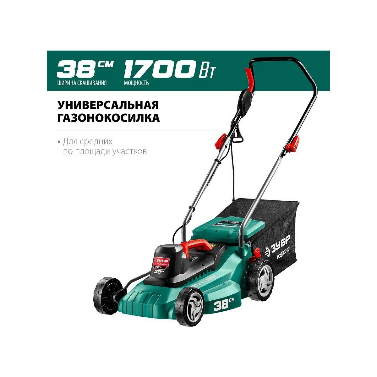 Газонокосилка сетевая ЗУБР ГСЦ-38-1700, 1700 Вт
