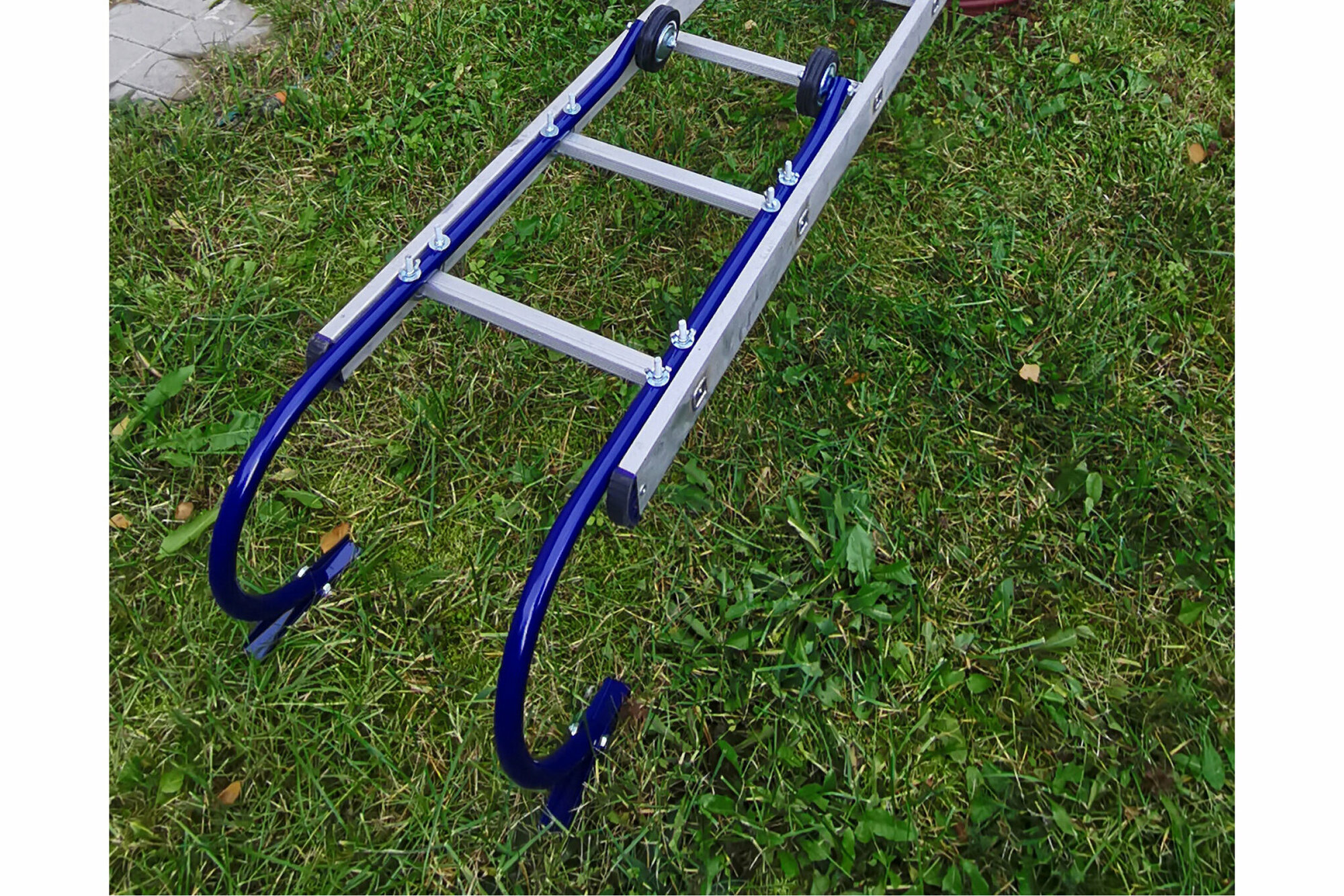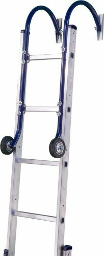 | Плюсы: | лёгкость монтажа на лестницу, надёжность фиксации за конёк крыши, колёсики для удобства надвижки лестницы на конёк крыши |