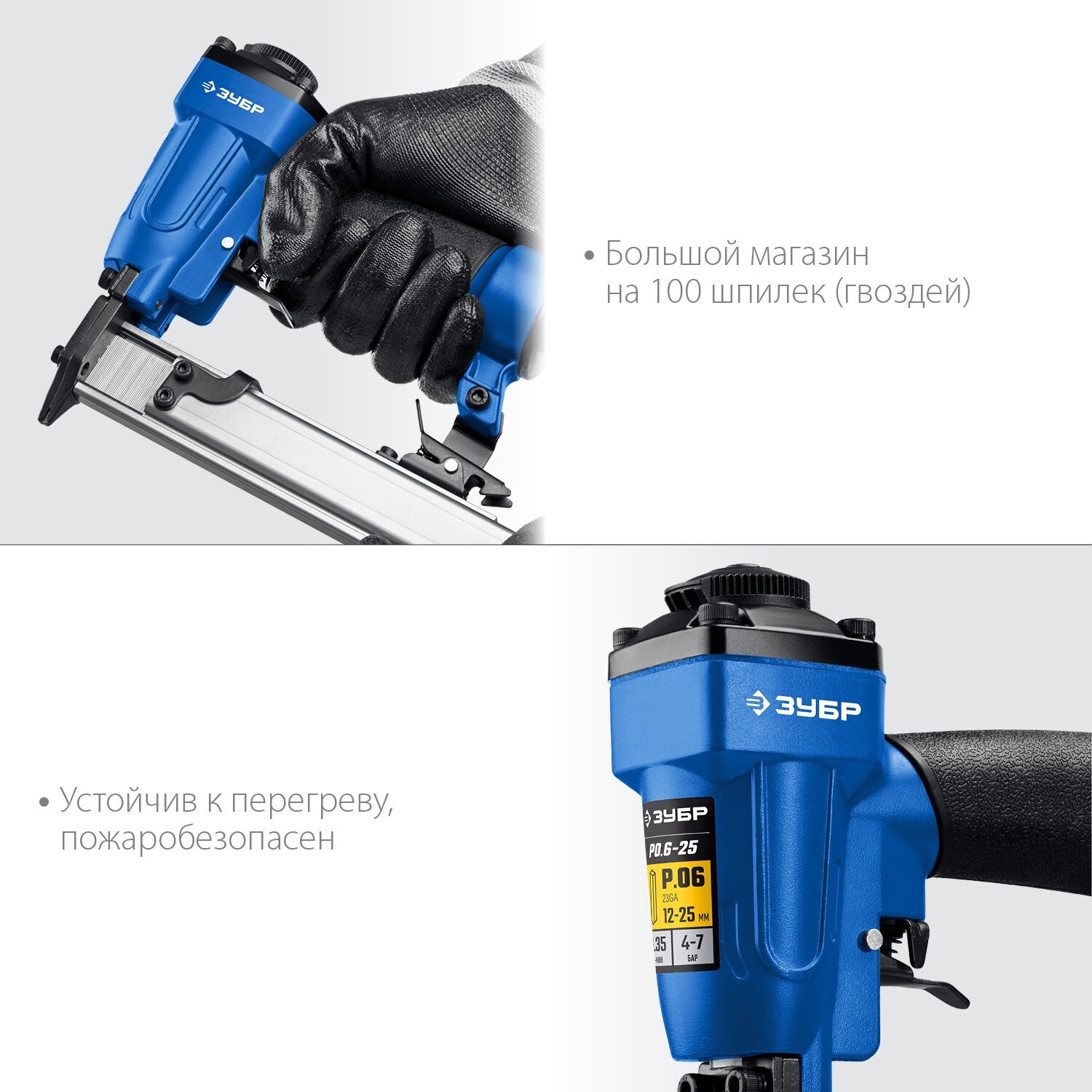 Пневматический нейлер (гвоздезабиватель) ЗУБР P0.6-25, шпильки тип P0.6 (12-25 мм), Профессионал