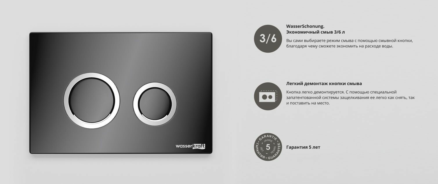 Механическая кнопка смыва WasserKRAFT PB01 матовый черный, хром интересное: