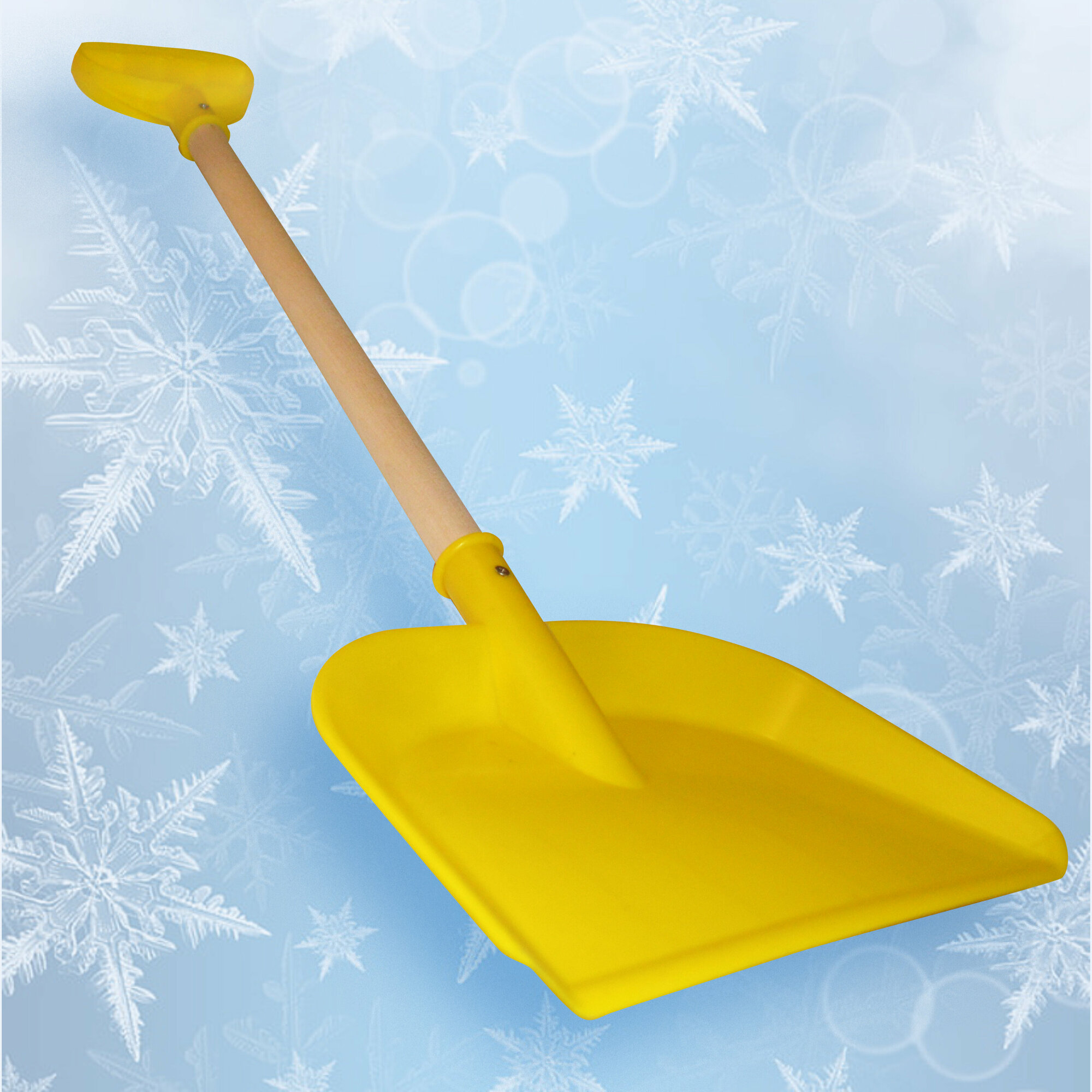 Купить Детская лопата для снега и песка с деревянным черенком и ручкой, длина 65 см, цвет желтый