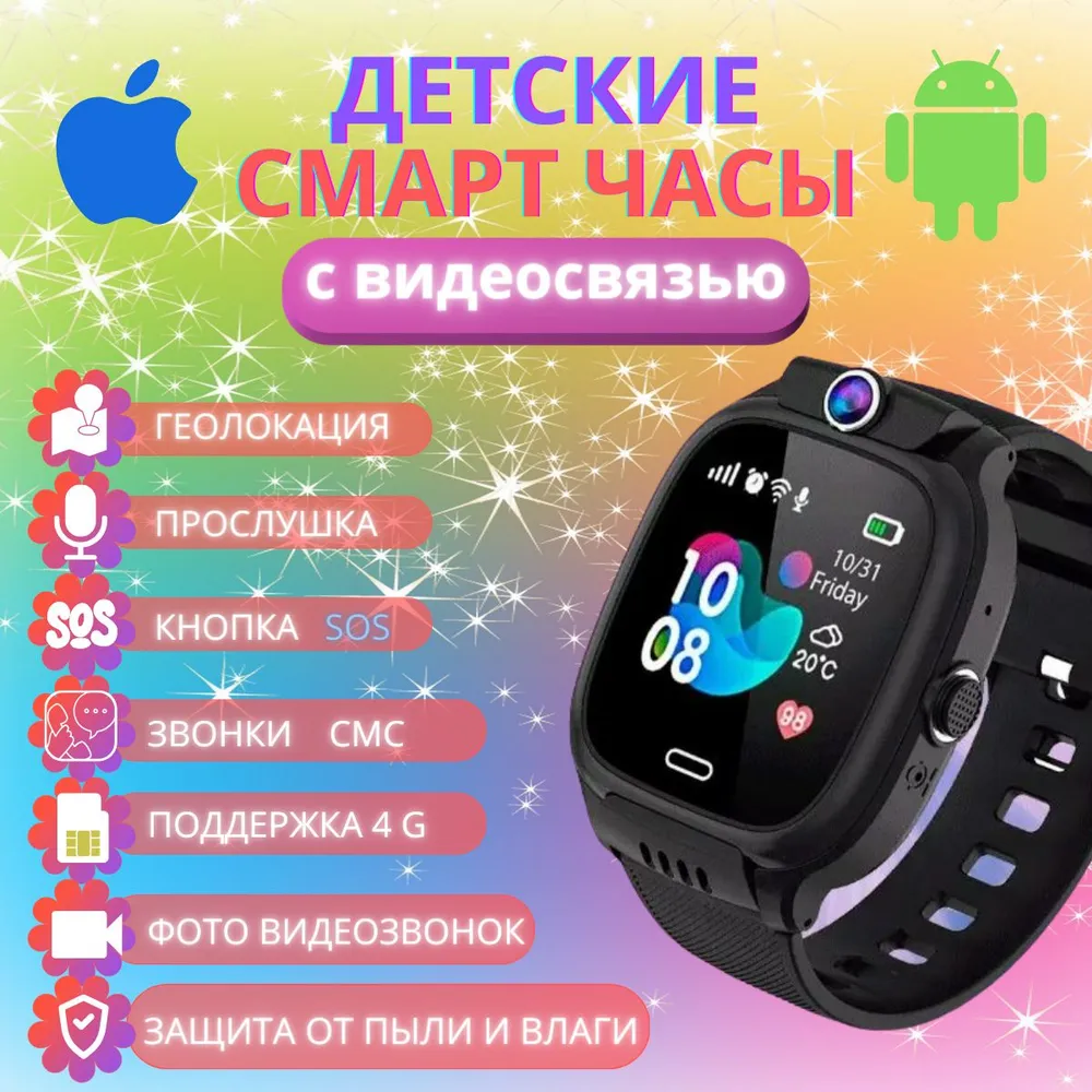 Детские смарт-часы с камерой, прослушкой и звонками, цвет Черный