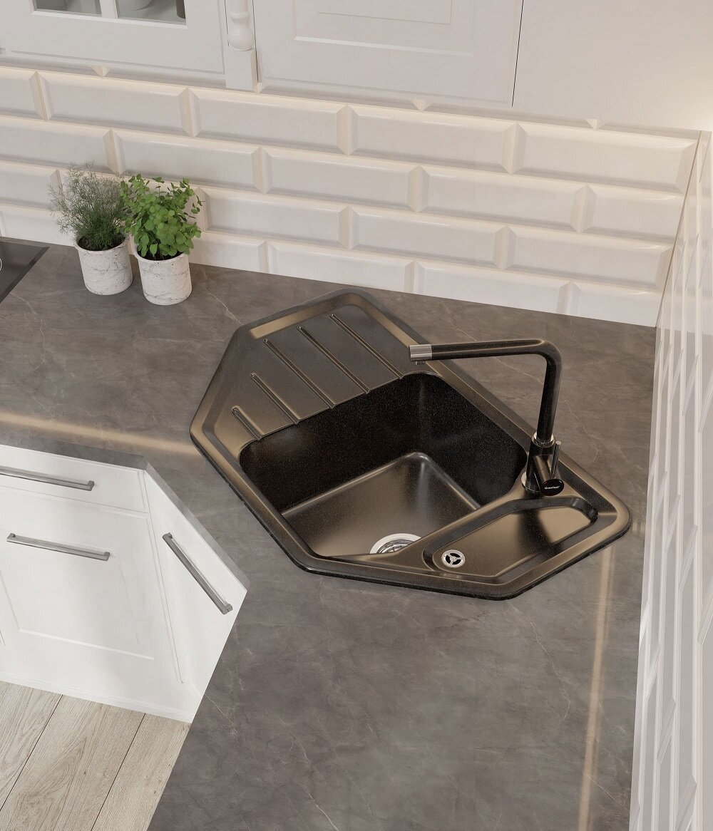 Мойка кухонная трапецевидная, угловая Granfest Corner (C-800E черный)