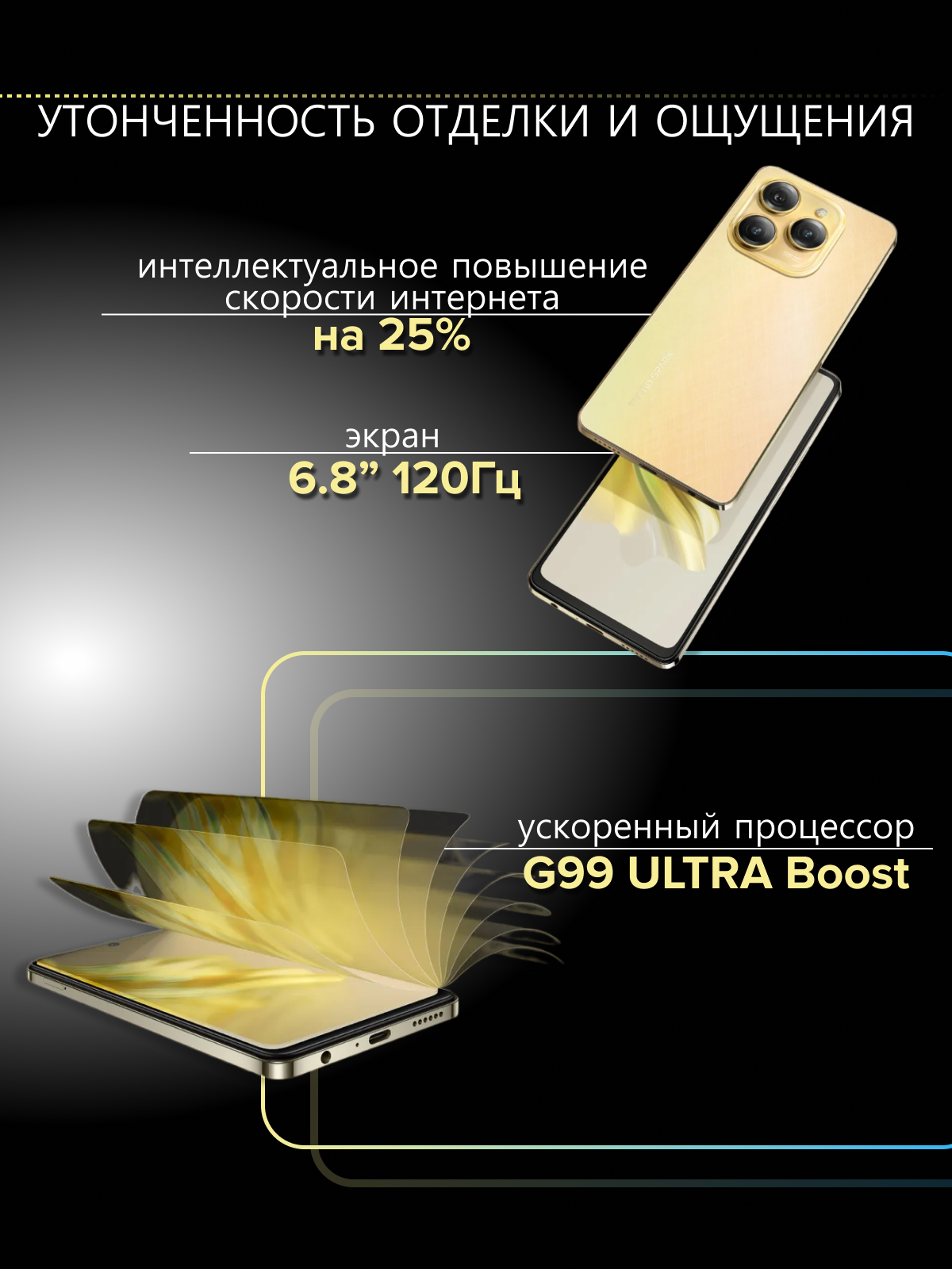 Смартфон Tecno Spark 20 Pro 256 ГБ золотой