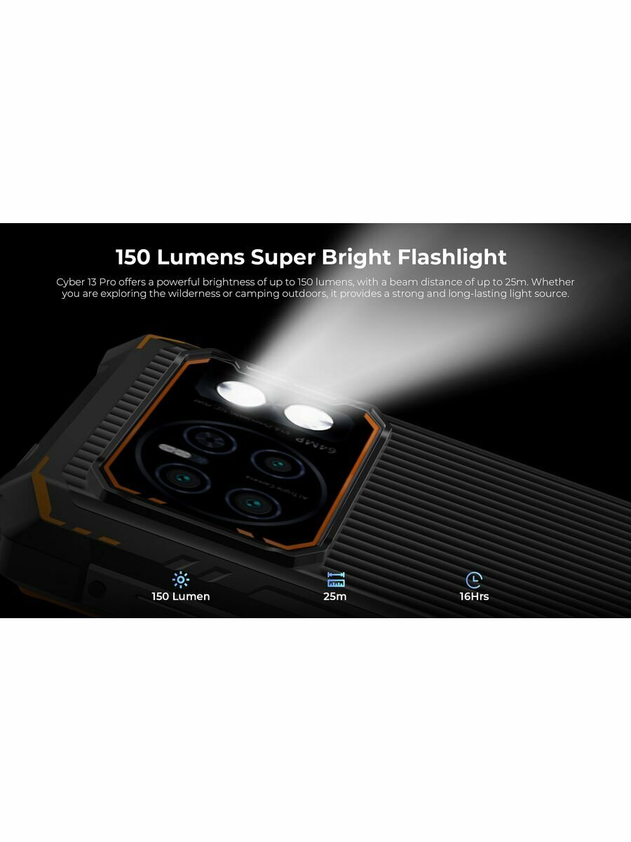 Фонарик HOTWAV Cyber 13 Pro, 20 ГБ + 256 ГБ, 6,6 дюйма, FHD + 2K, 10800 мАч, 20 Вт, быстрая зарядка, 64 мп, Android 13, глобальная версия, Cyber 13 Pro Orange, Global Version