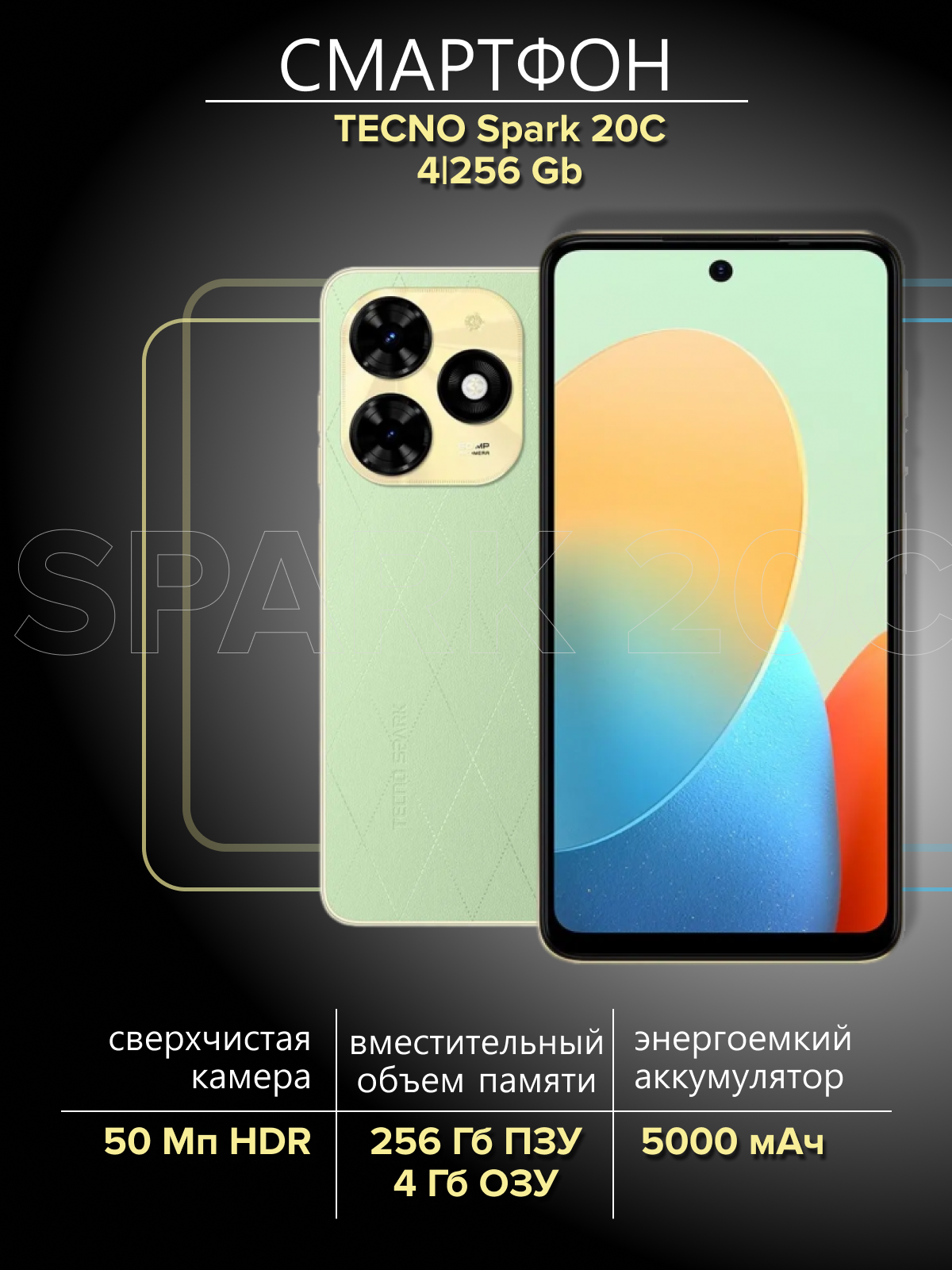 СохранитьСмартфон Tecno Spark 20C 4/256Gb Magic Skin Green интересное: