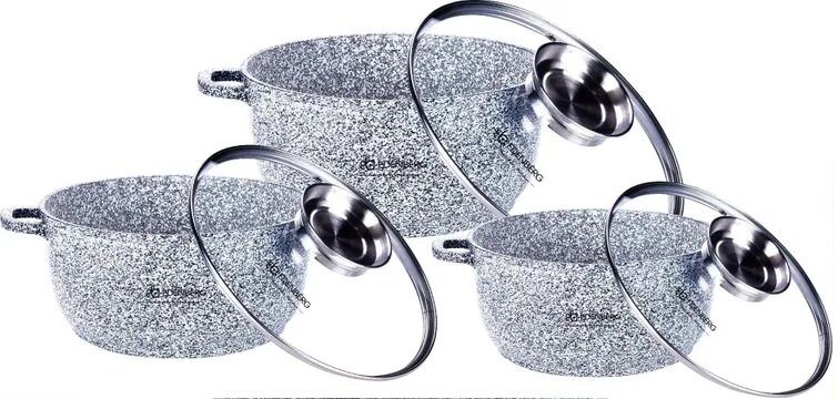 | Комплектация | 3 кастрюли: 2.6 л, 4.6 л, 6.7 л; 3 крышки |