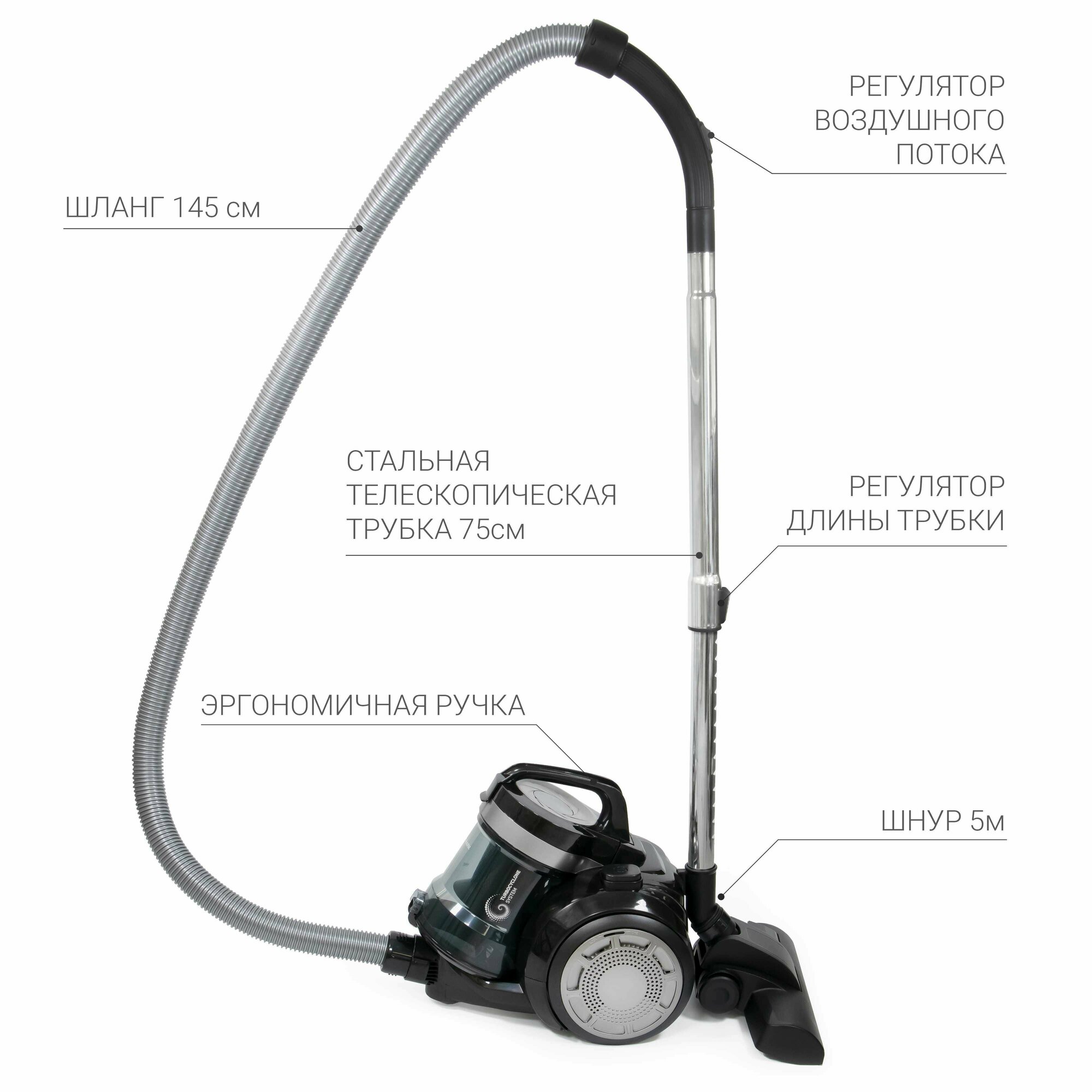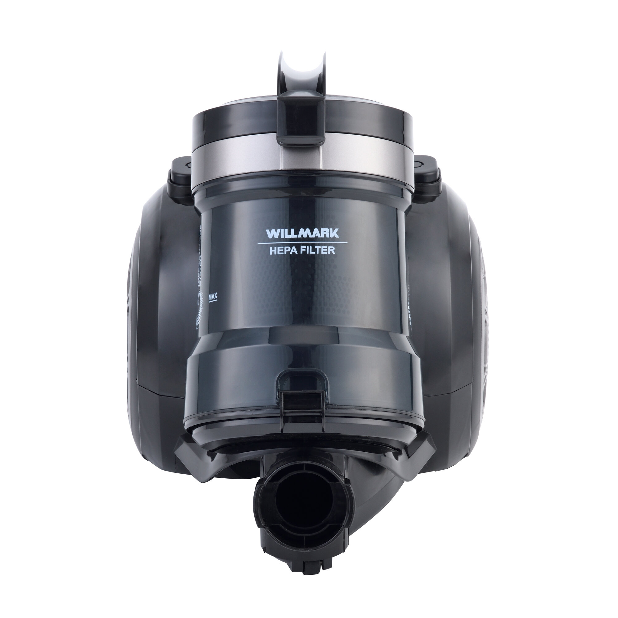 Пылесос для дома Willmark VC-2255CYM циклонного типа, с контейнером для сбора пыли и плавной регулировкой мощности, серый/черный