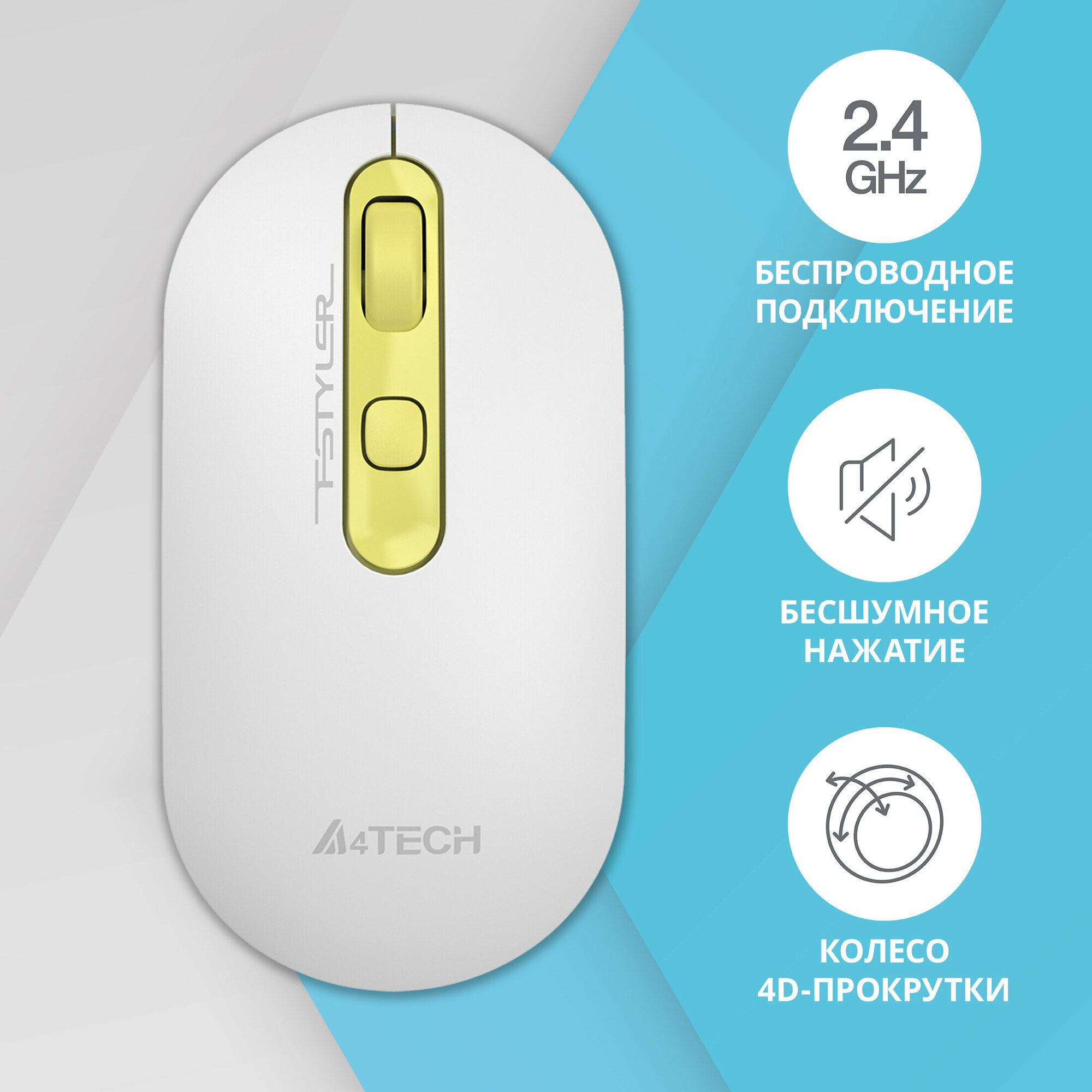 Купить Мышь A4TECH Fstyler FG20 Daisy, оптическая, беспроводная, USB, белый и желтый [fg20 (daisy)]
