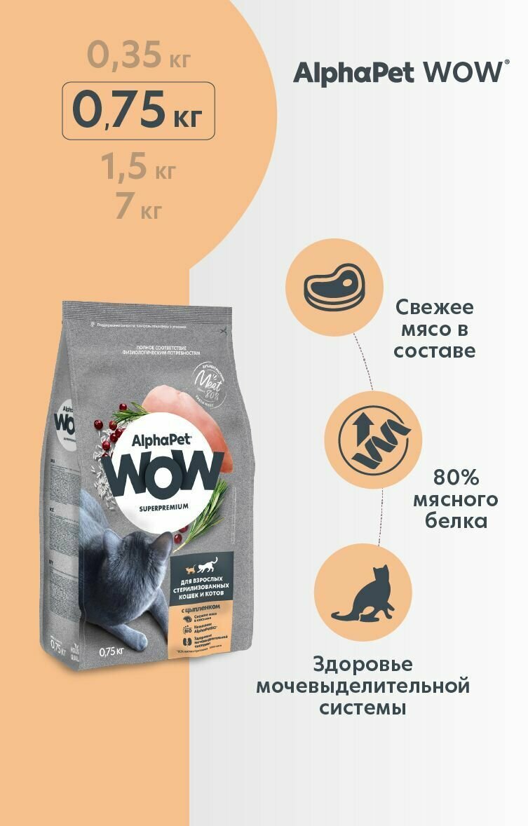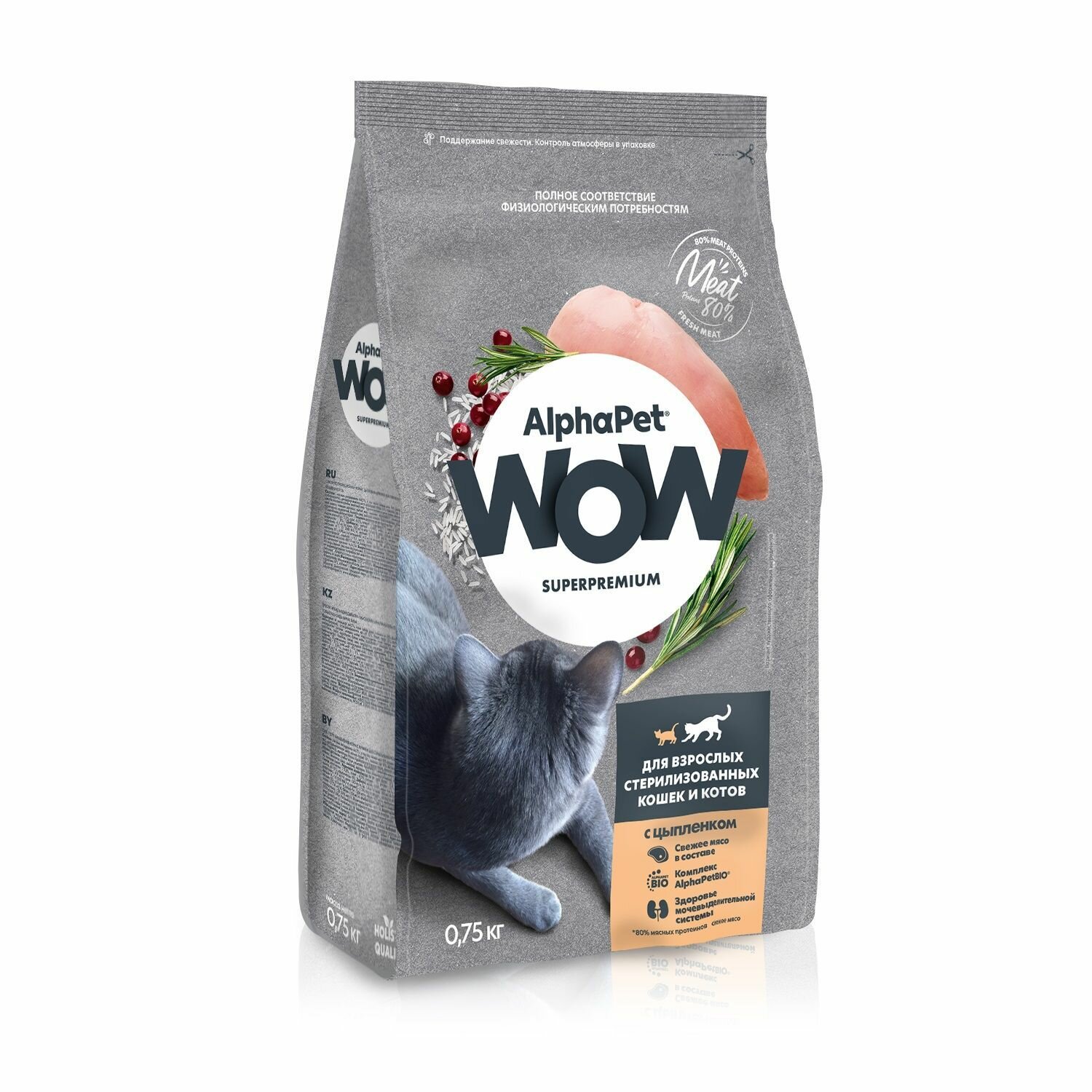 Купить Сухой корм AlphaPet WOW для стерилизованных кошек c цыпленком 0,75 кг