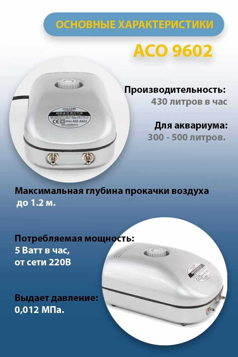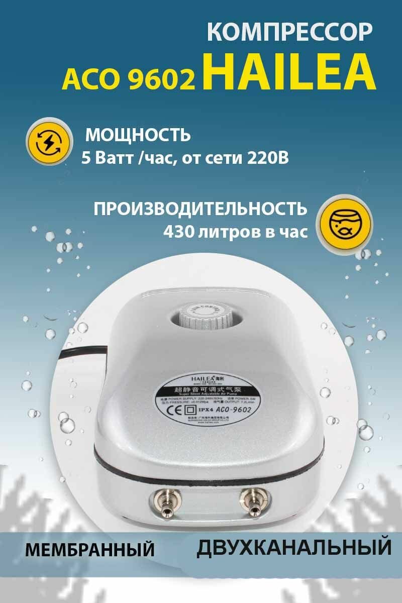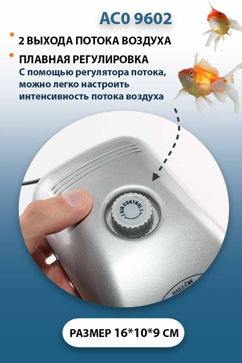 Купить Компрессор для аквариума HAILEA ACO-9602 бесшумный, с регулятором потока воздуха