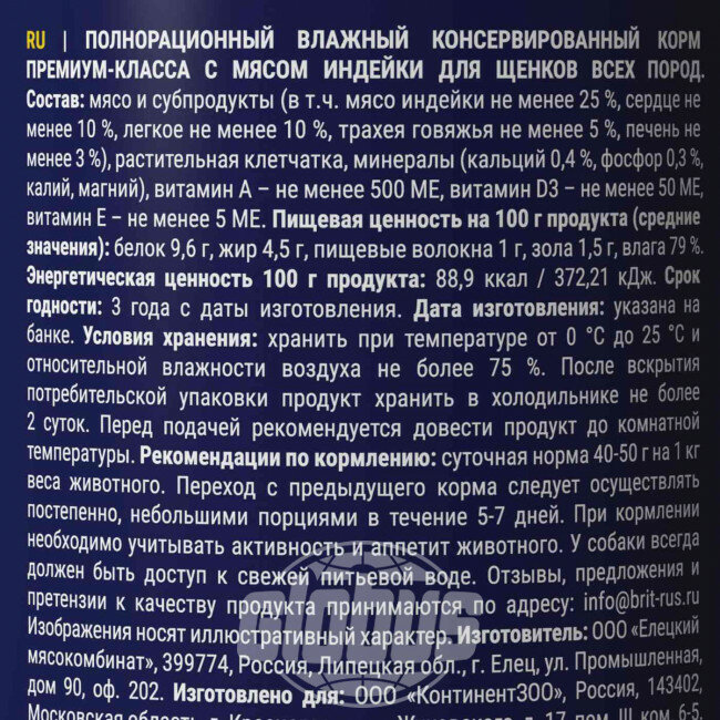 BRIT 410гр Корм для щенков Premium by Nature с индейкой интересное: