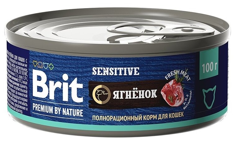 BRIT Premium by Nature Cat Adult Sensitive Корм влаж.ягнёнок д/кошек с чувств.пищевар.конс.100г