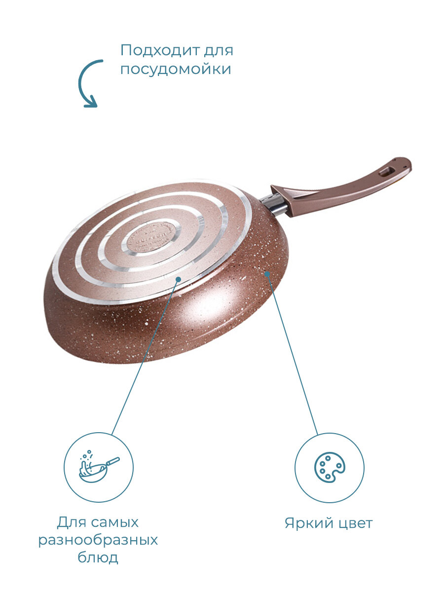 Сковорода Oursson "Rose Gold" PF2824G/RG, алюминий, антипригарное покрытие, 3,5 л (Розовое золото)