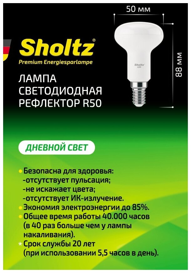 Комплект из 2 светодиодных энергосберегающих ламп Sholtz рефлектор R50 7Вт E14 4200K 220B пластик (Шольц) LER3145D интересное: