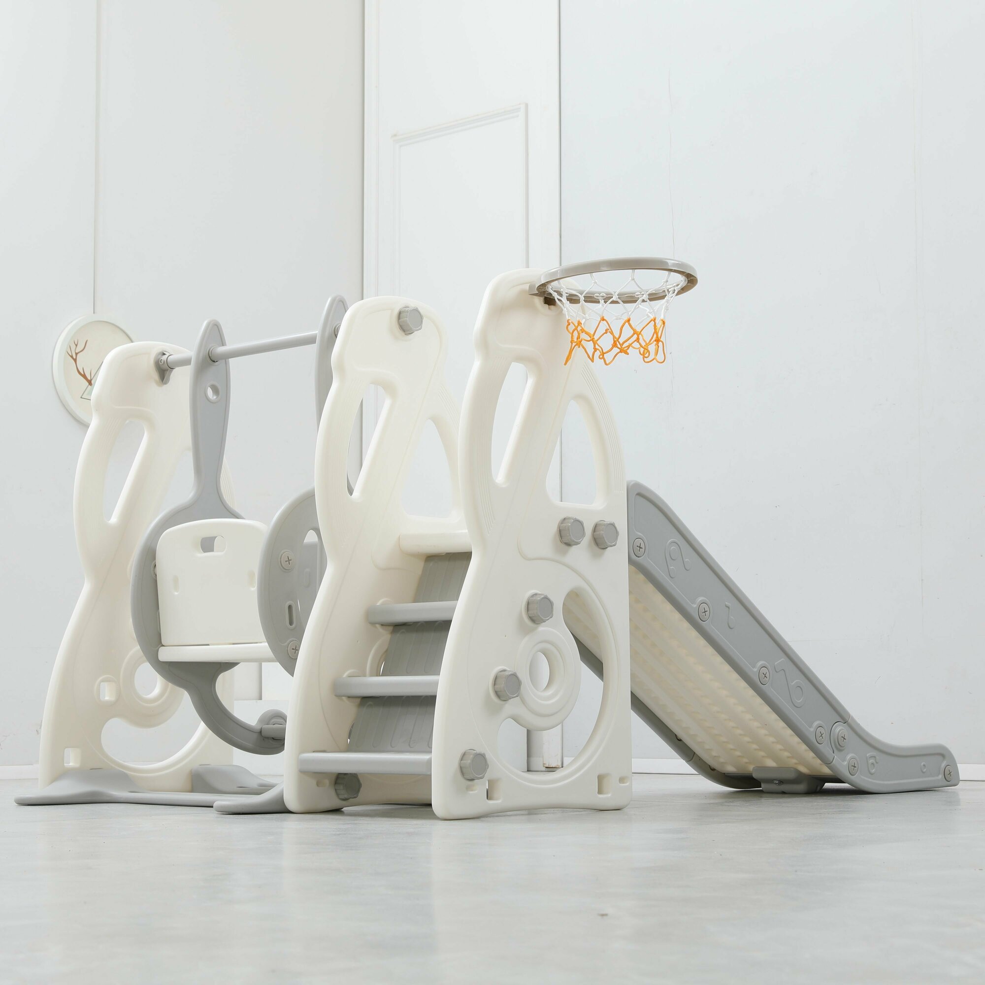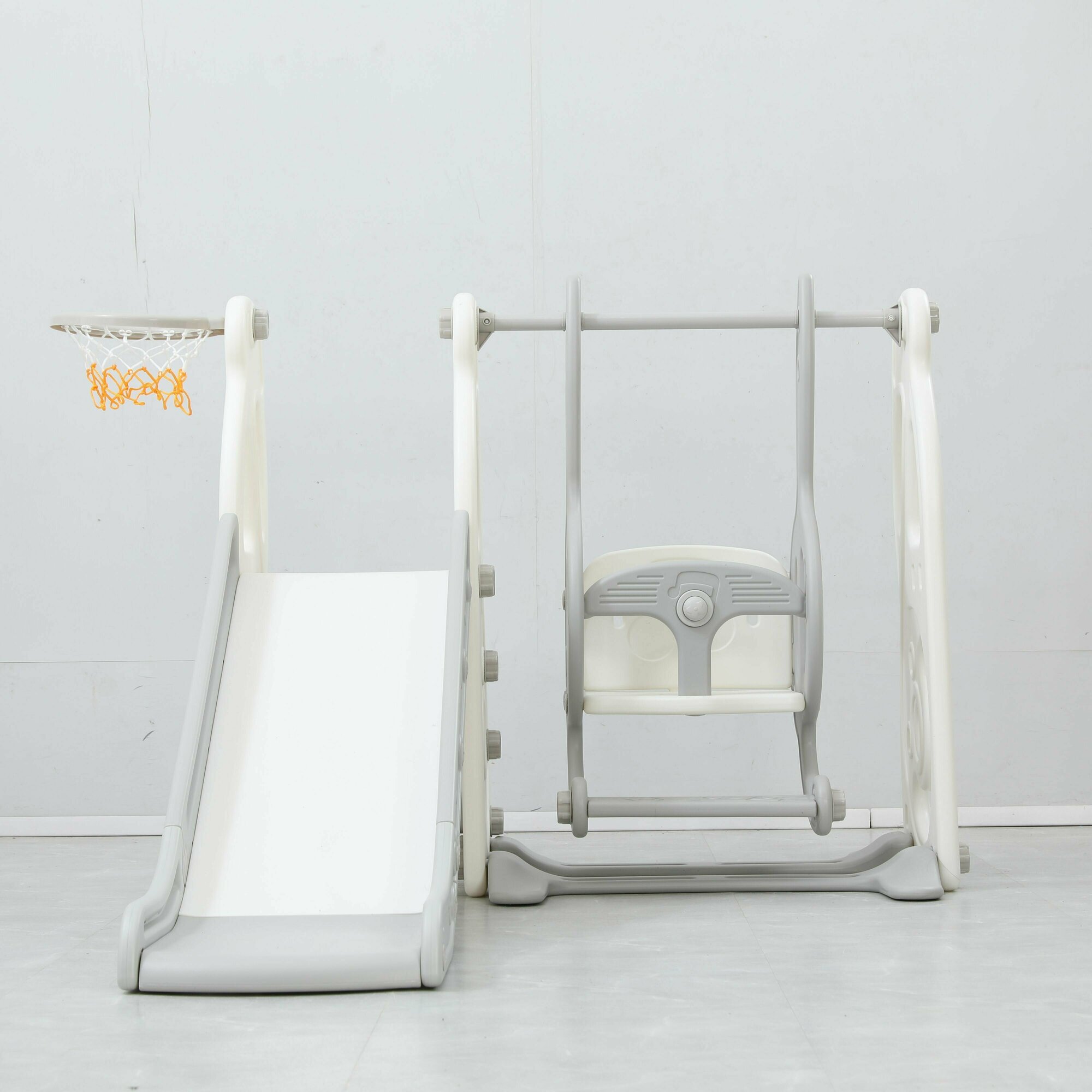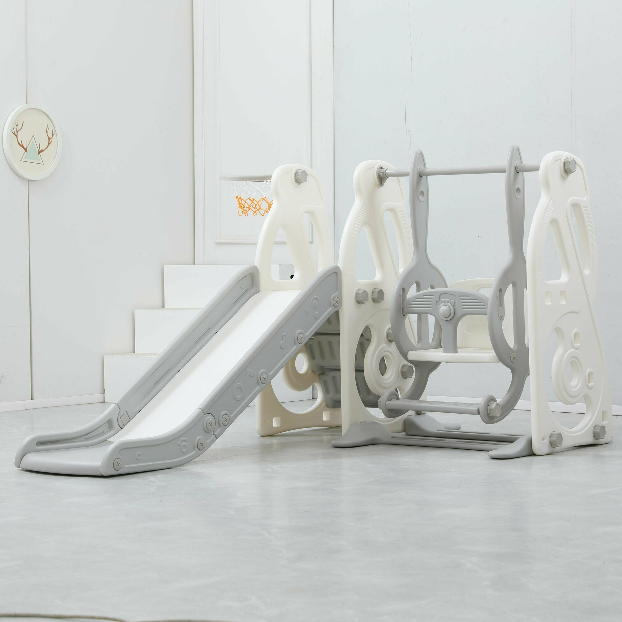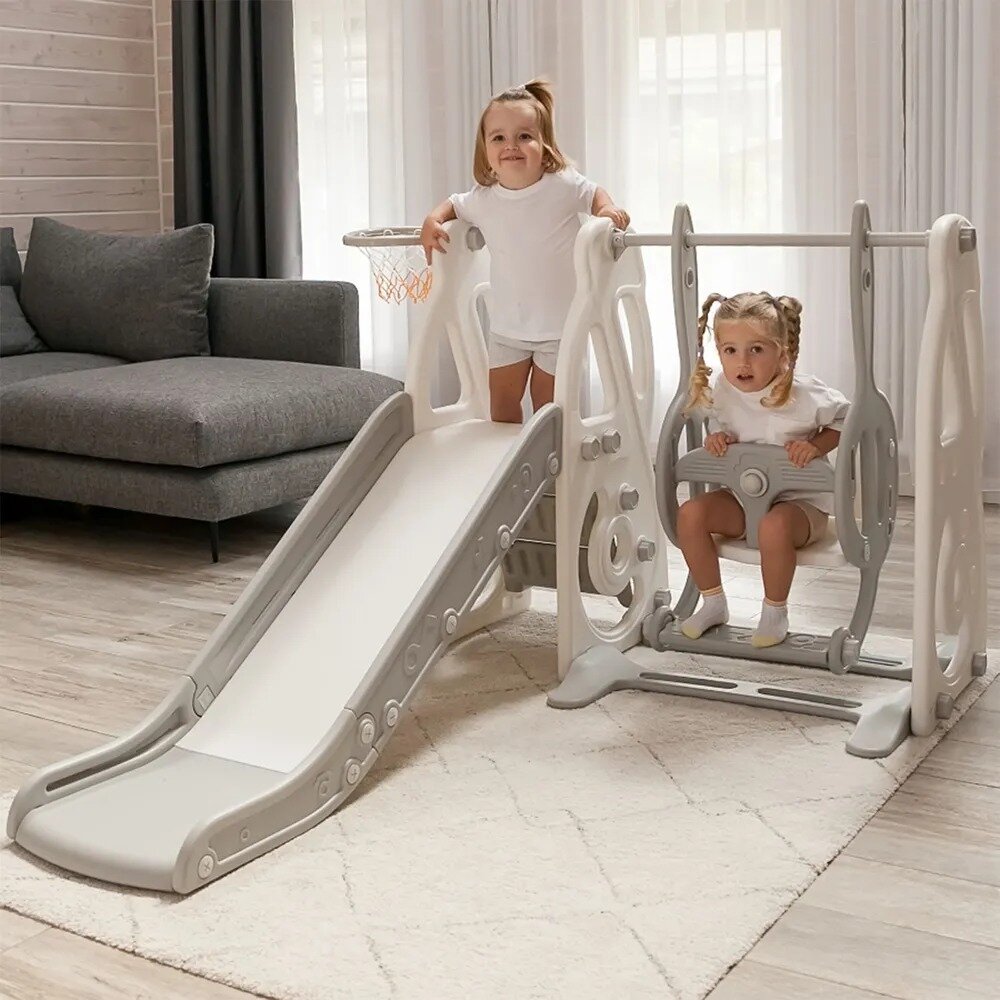 Горка детская UNIX Kids Music Grey с качелями, со спуском 136 см, из пластика, игровой комплекс 2 в 1, 118х136х102 см, серый, белый