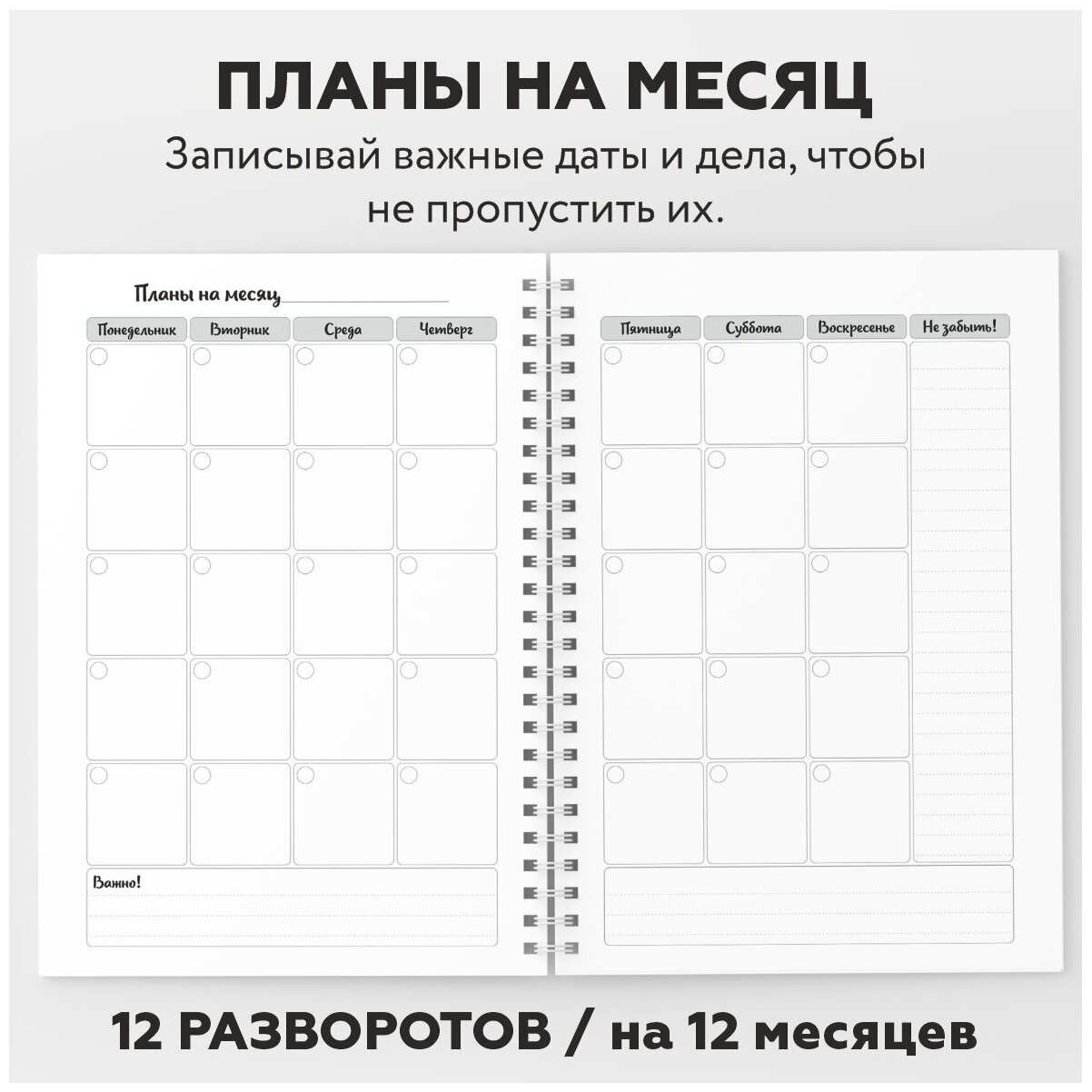 | Минусы: | В товаре, который доставили мне, не хватает друг страниц. Одной с трекером привычек и одной с расписанием. Это очень огорчило |