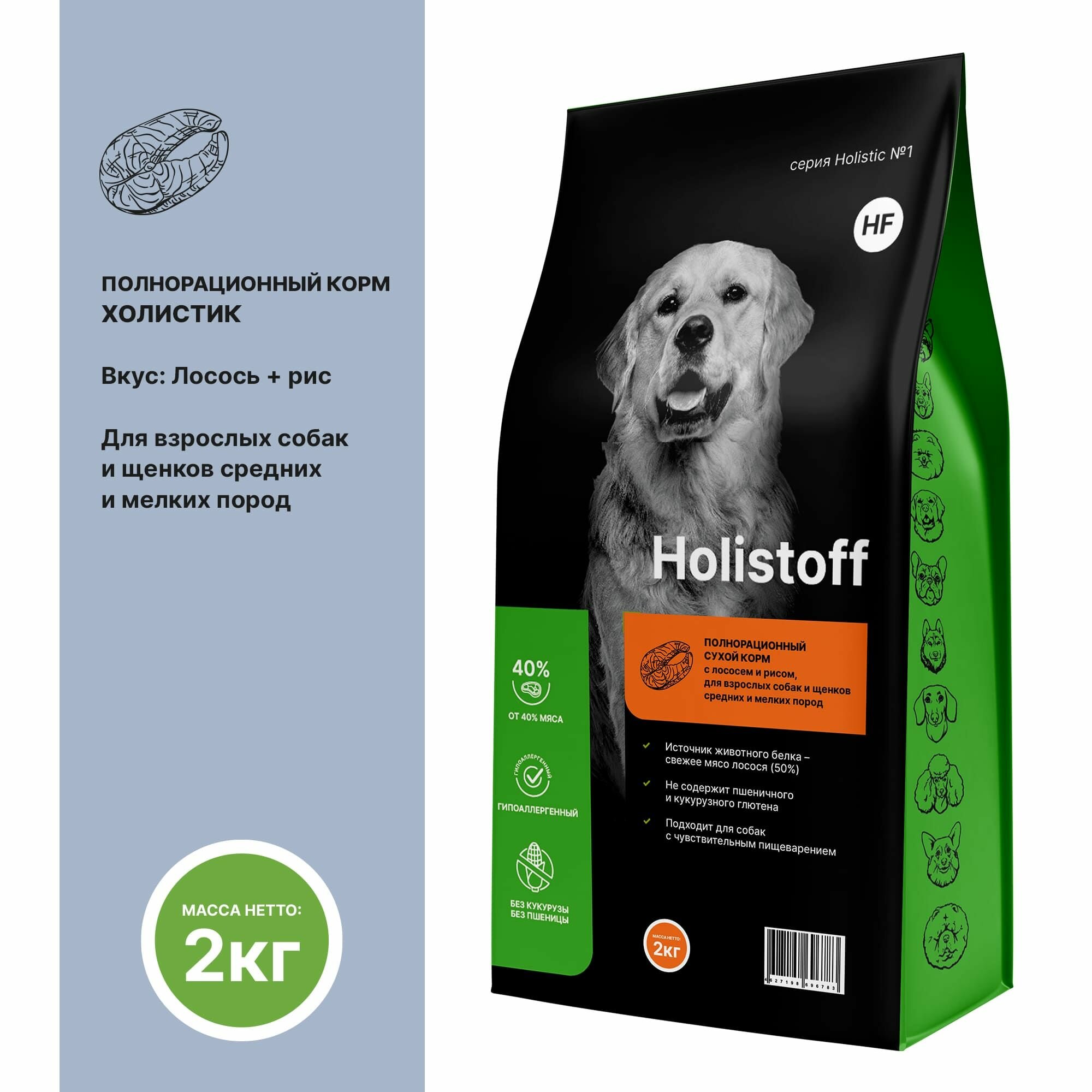 Купить Holistoff сухой корм для взрослых собак и щенков средних и мелких пород с лососем и рисом, 2 кг,