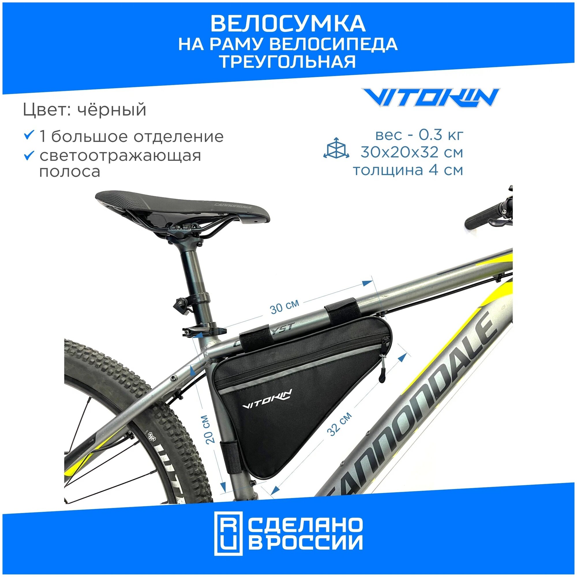 Велосумка под раму велосипеда, сумка велосипедная треугольная VITOKIN, черная