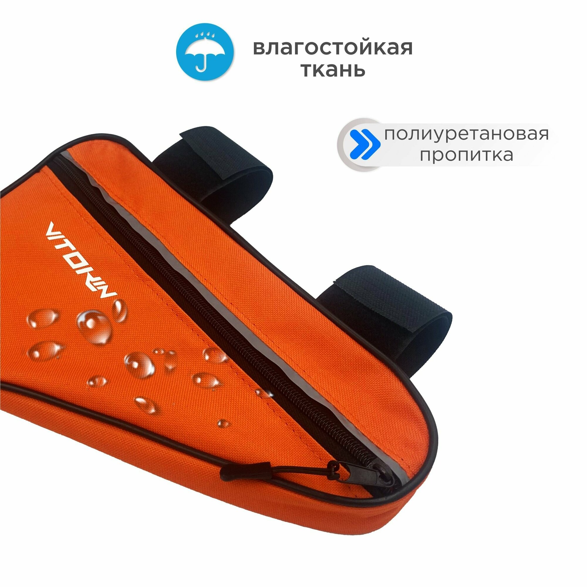 Велосумка под раму велосипеда, сумка велосипедная треугольная VITOKIN, оранжевая
