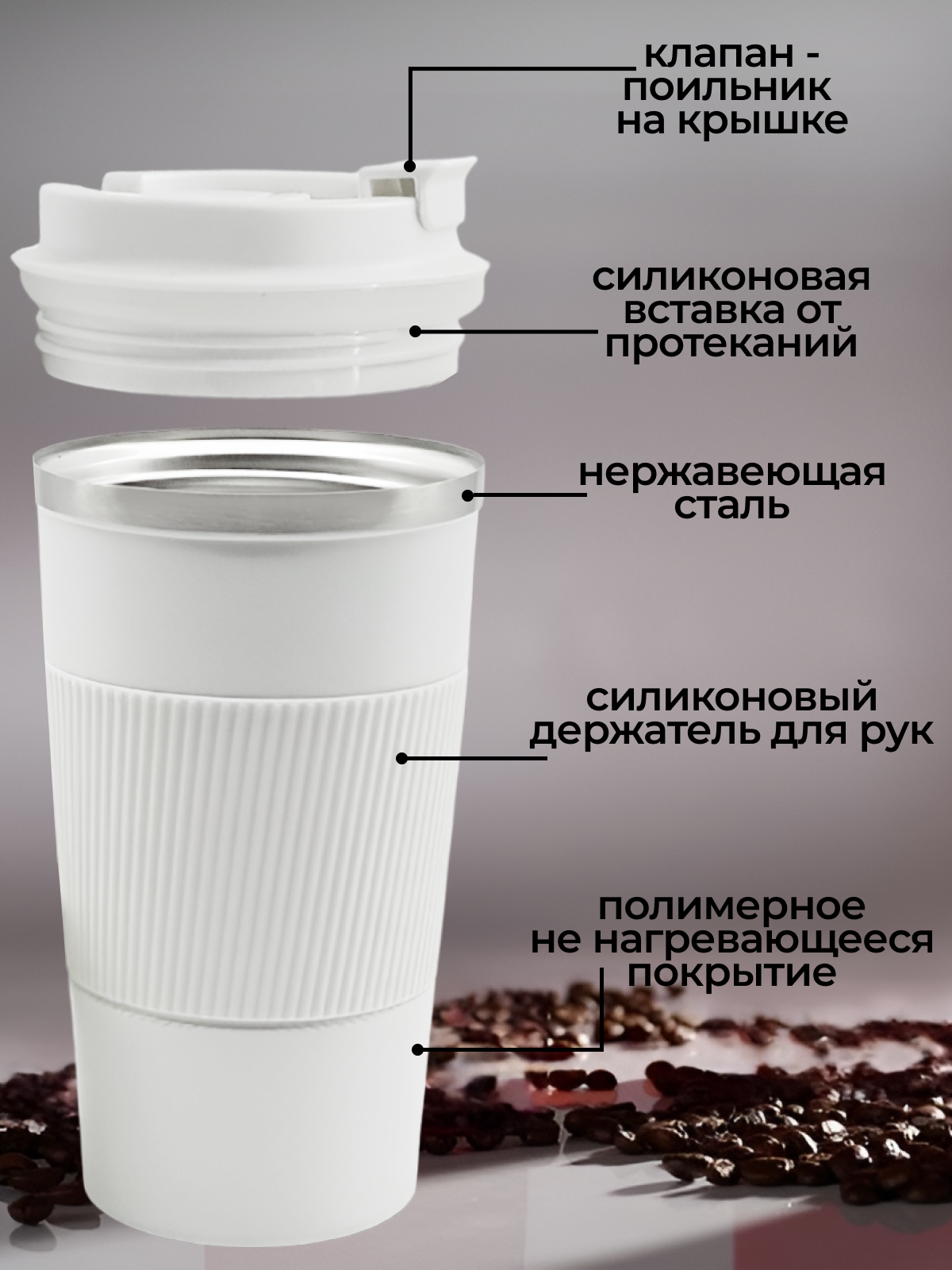 Дизайн супер, не проливается, не гремит в подстаканнике.
