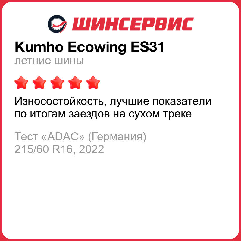 Летняя шина Kumho Ecowing ES31 (215/60 R16 95V)