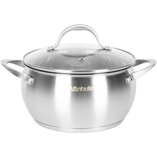 Набор кастрюль ATTRIBUTE из нержавеющей стали для индукционных плит / кастрюля с крышкой 3.3 л + ковш с крышкой 1.7 л