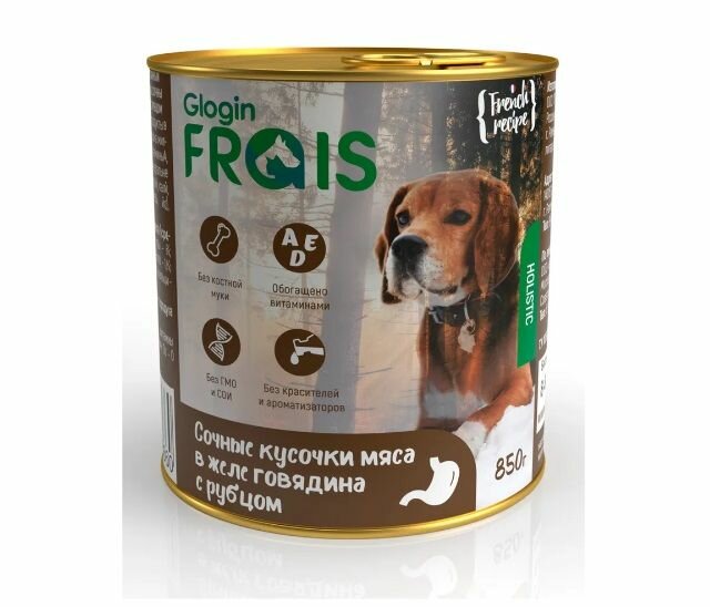 FRAIS HOLISTIC 850гр Корм для собак мясные кусочки с говядиной и рубцом в желе