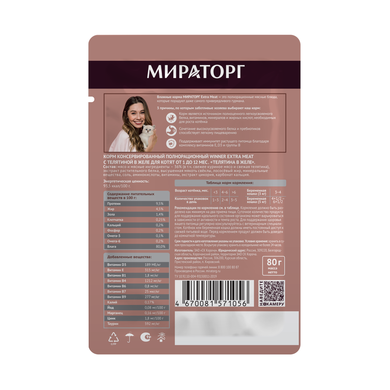 WINNER 80гр для котят с телятиной в желе Extra Meat интересное: