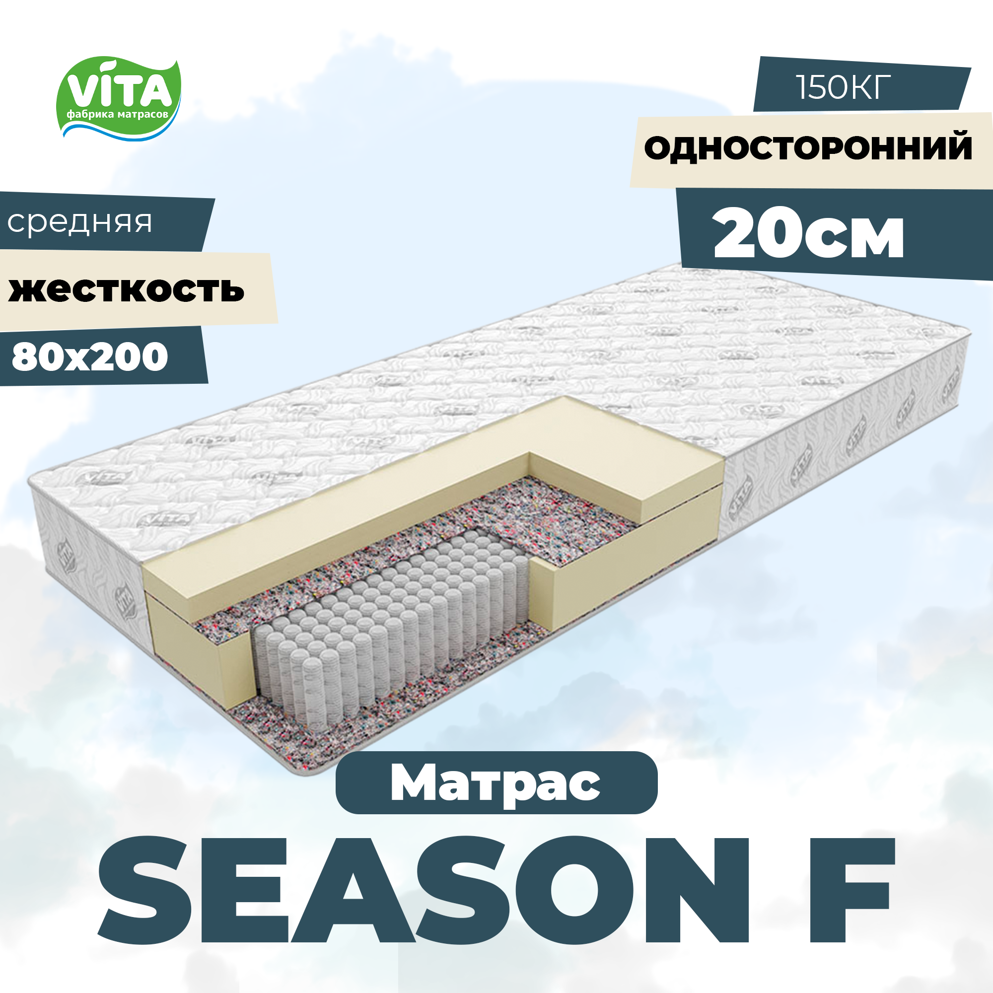Матрас ортопедический VITA Single Foam (150х200), независимые пружины S 1000