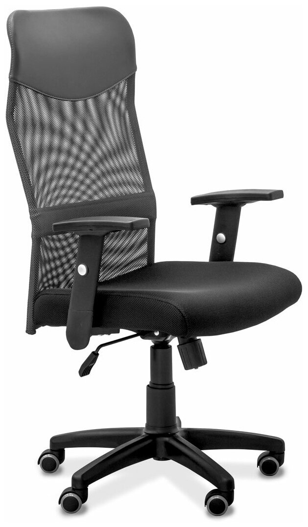 Купить Кресло руководителя Сити на колесиках, регулируемое, экокожа, Юнитекс, компьютерное и офисное кресло, серое, черное