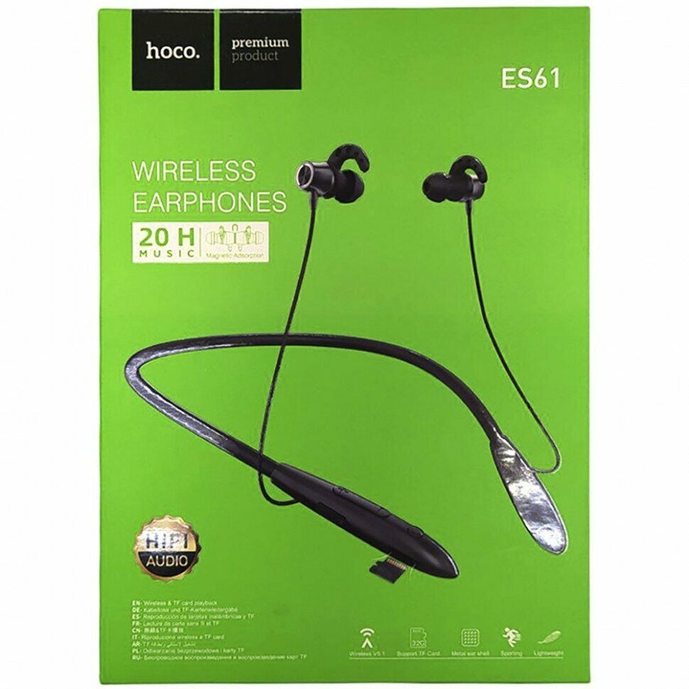 Наушники ES61, HOCO, беспроводные спортивные вакуумные наушники с обручем, черные