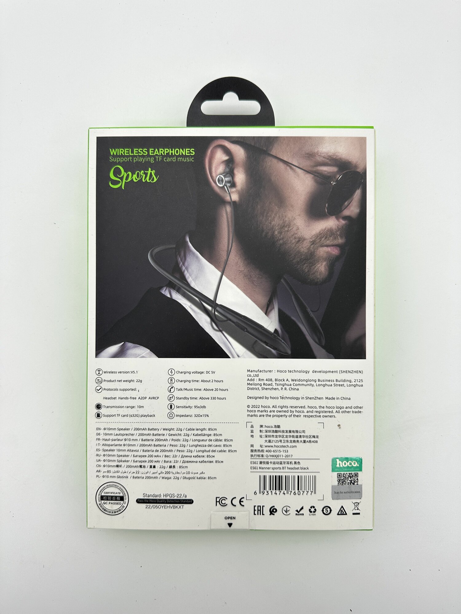 Беспроводные наушники для спорта HOCO ES61 Manner, Bluetooth, черный