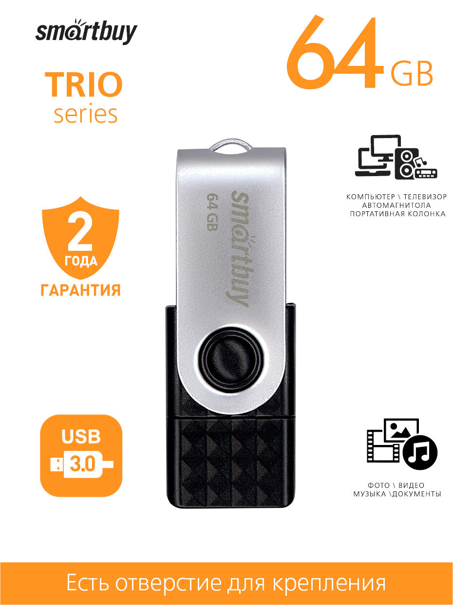 Ниже Вы можете прочитать отзывы на Флеш-накопитель USB 3.0/3.1 Gen1 Smartbuy 64GB TRIO 3-in-1 OTG (USB Type-A + USB Type-C + micro USB), ознакомится с подробными характеристиками, посмотреть интересные обзоры и фотографии на Флеш-накопитель USB 3.0/3.1 Gen1 Smartbuy 64GB TRIO 3-in-1 OTG (USB Type-A + USB Type-C + micro USB).