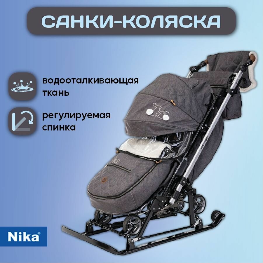 Купить Санки-коляска комбинированная Nika Joy every day, серая с кроликами