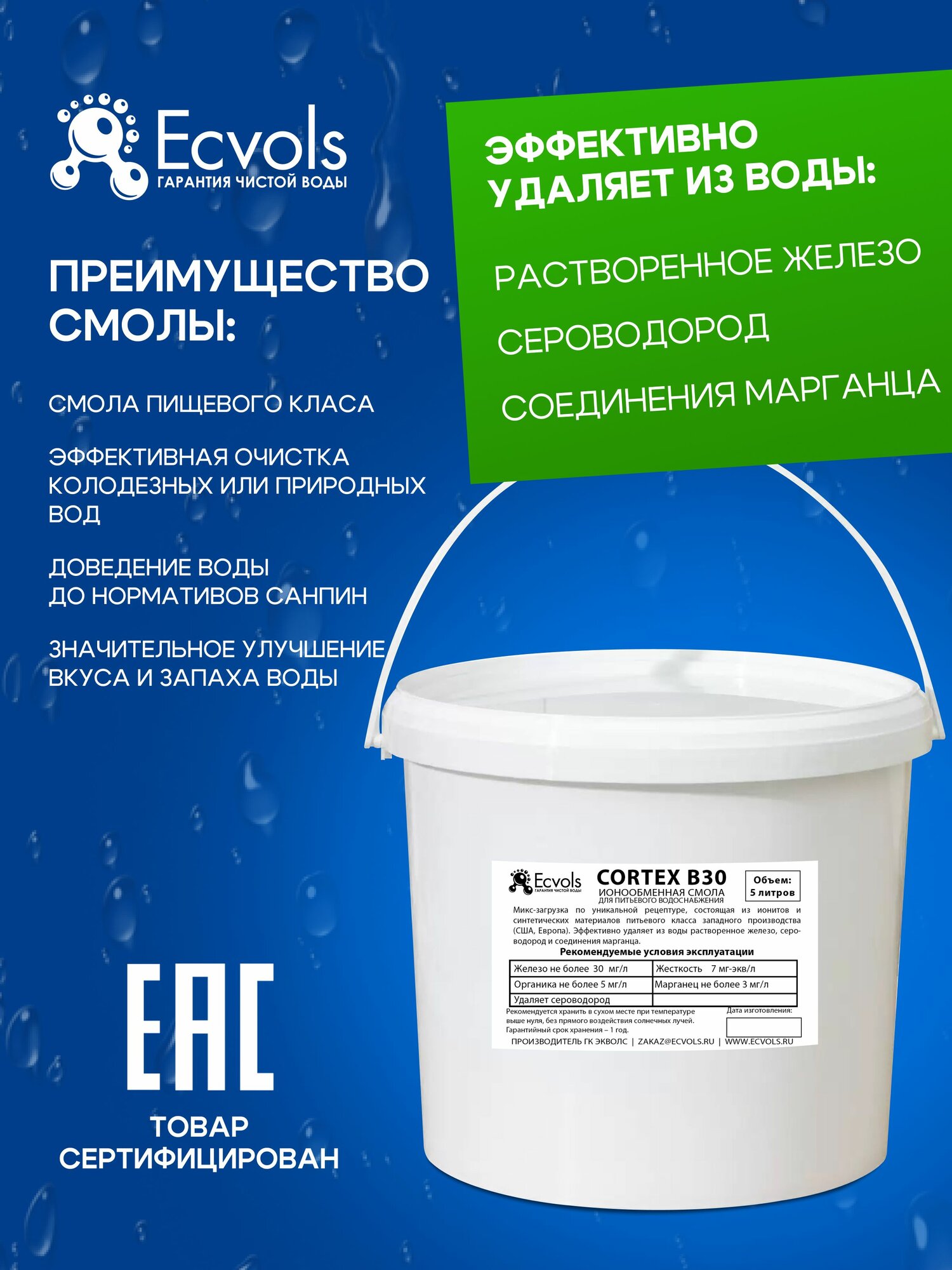 Ионообменная смола микс Cortex B30, умягчение воды, удаление железа, органики и сероводорода, 5 литров интересное: