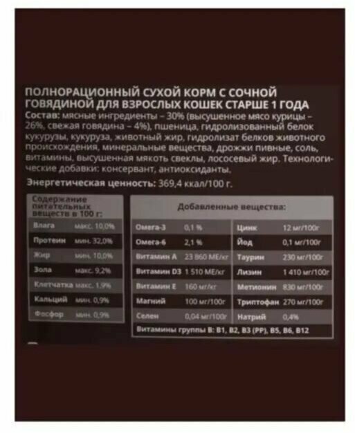 Сухой полнорационный корм Мираторг WINNER MEAT 3х300гр для взрослых кошек старше 1 года всех пород с сочной говядиной интересное: