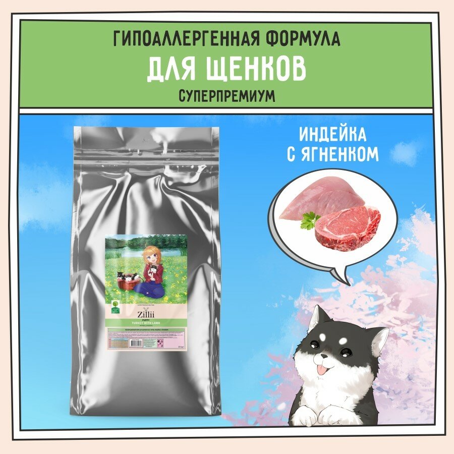 Корм сухой для щенков 3 кг, гипоаллергенный ZILLII (Зилли) Puppy, Индейка с Ягнёнком