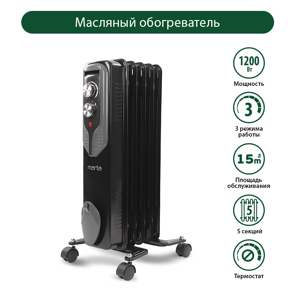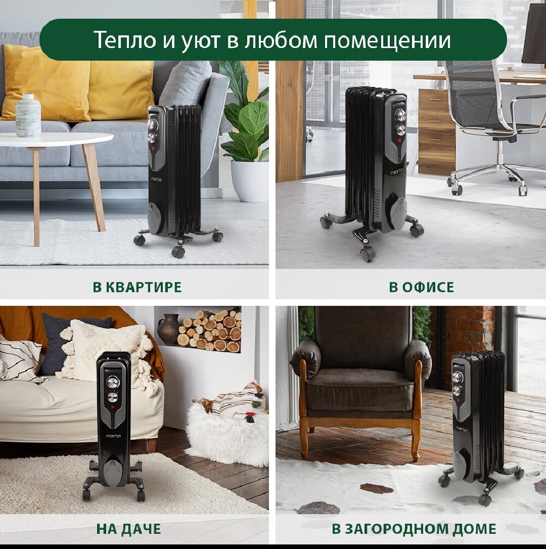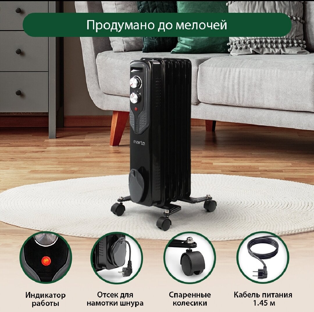 MARTA MT-OH2429A черный жемчуг Масляный обогреватель интересное: