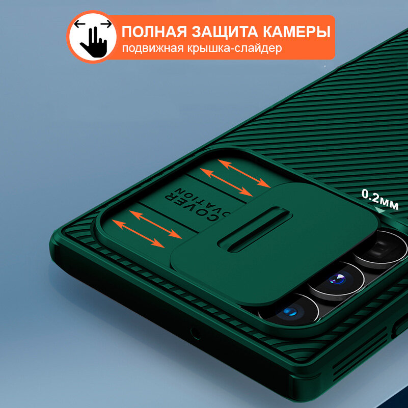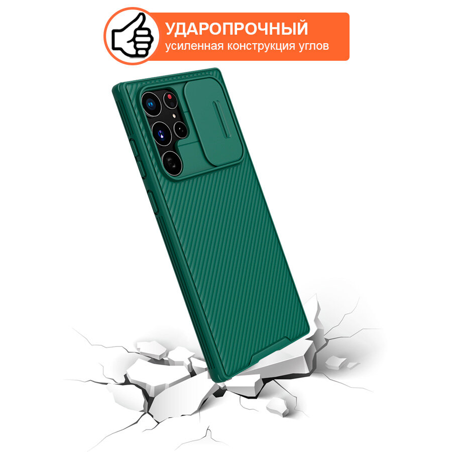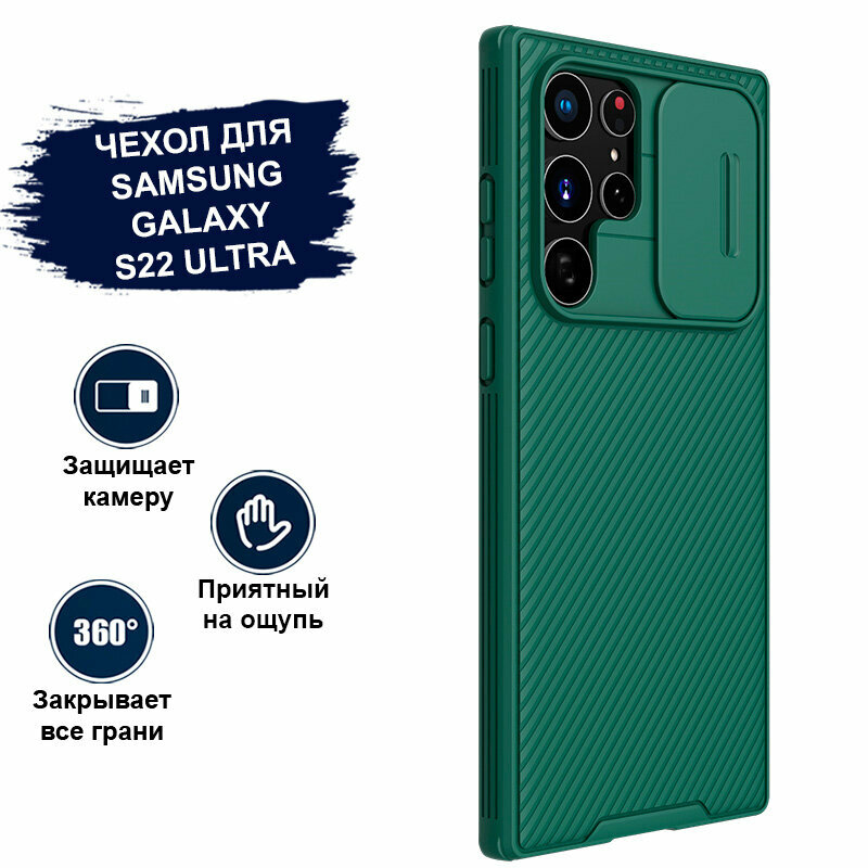 Чехол зеленого цвета от Nillkin для Samsung Galaxy S22 Ultra, с защитной шторкой для задней камеры, серия CamShield Pro Case