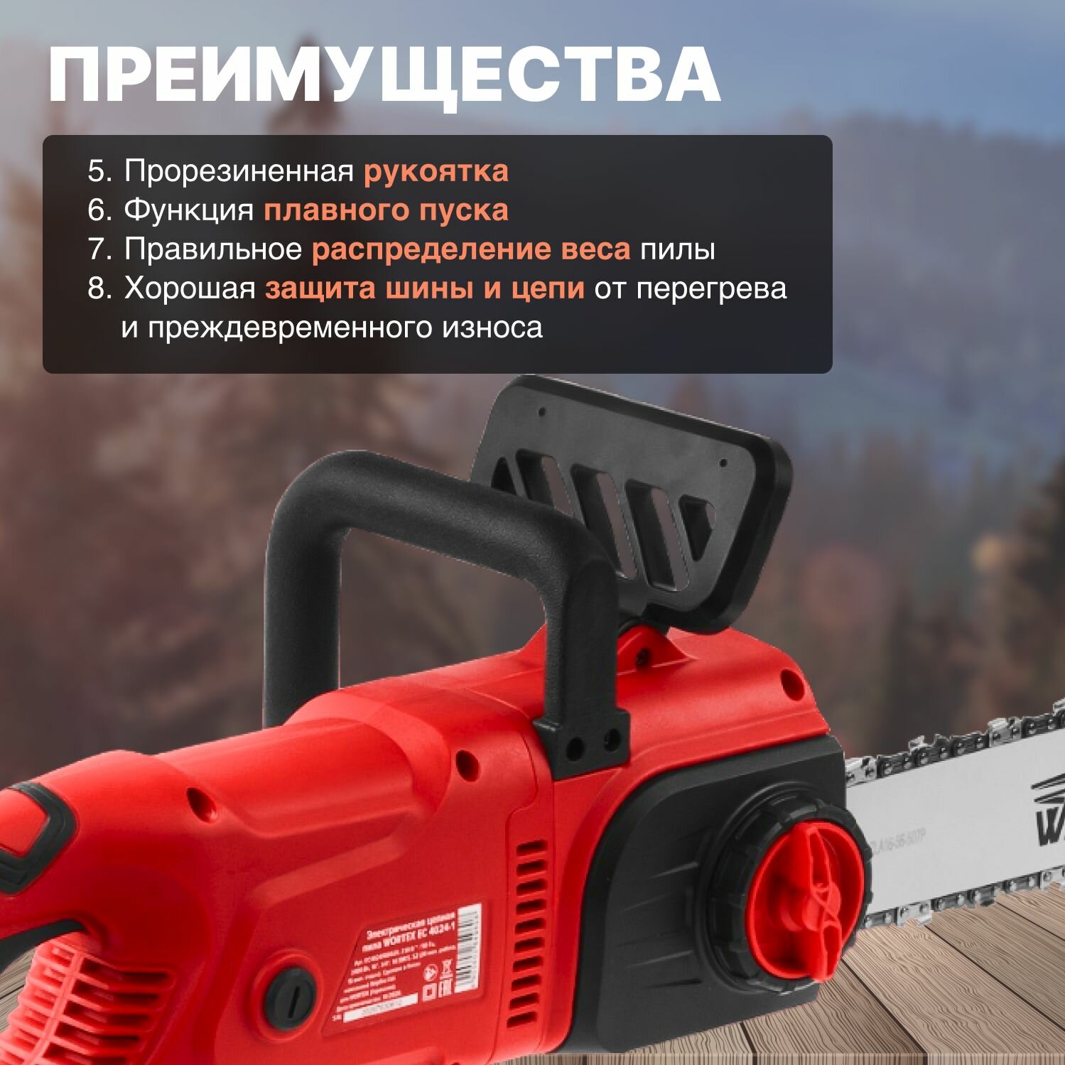 Пила цепная электрическая WORTEX EC 4024-1 шина 40 см (16"), 2400 Вт