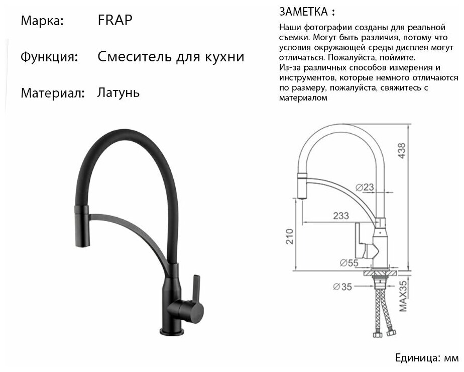 Ниже Вы можете прочитать отзывы на 4552-6 Смеситель Кухня Frap d-35 на гайке (черный), ознакомится с подробными характеристиками, посмотреть интересные обзоры и фотографии на 4552-6 Смеситель Кухня Frap d-35 на гайке (черный).
