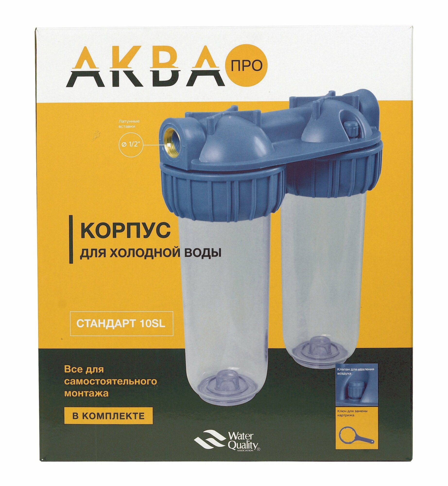 | Дополнительная информация | Сборка из двух магистральных корпусов Аква Про 10SL для холодной воды, резьба 1/2" |