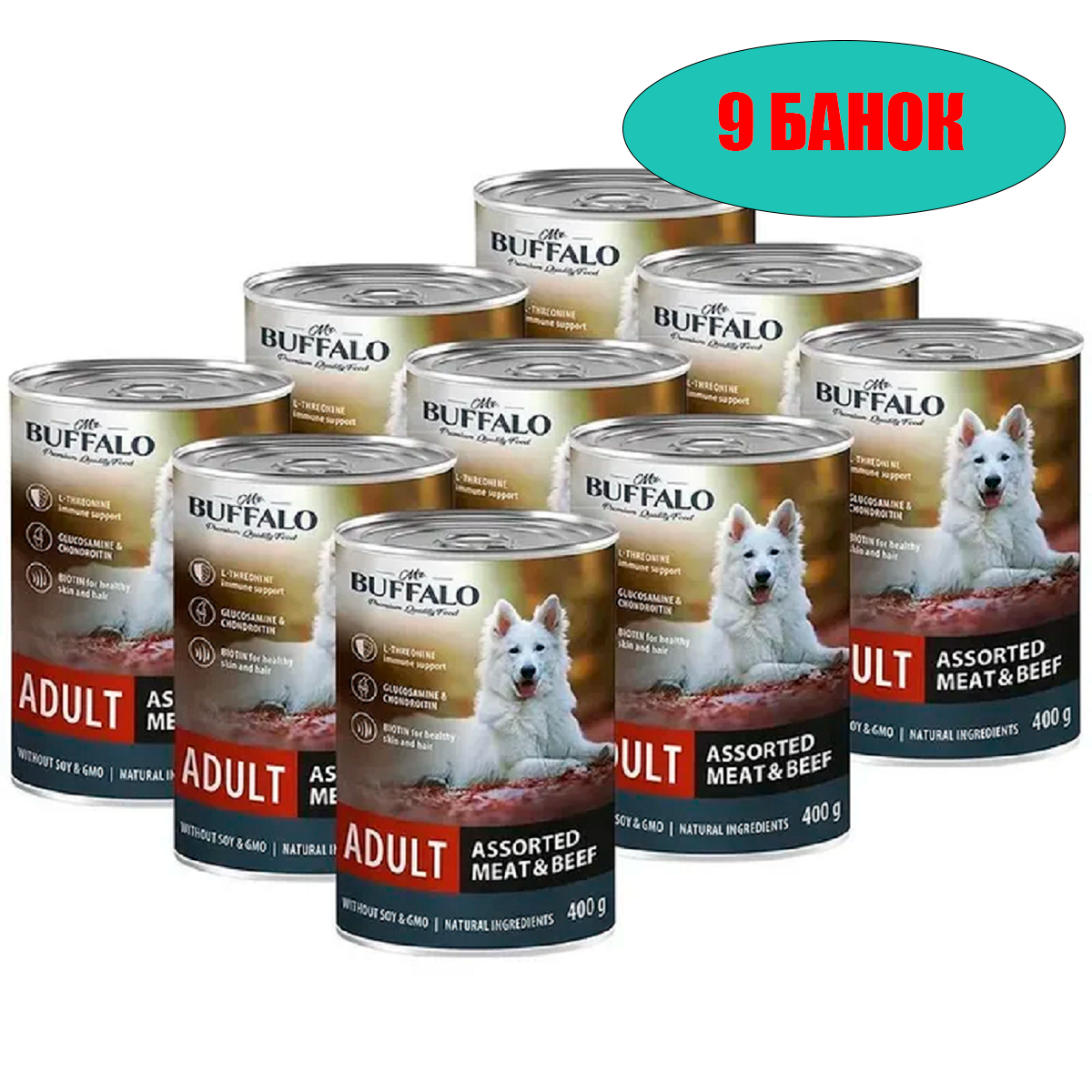 Баффало ADULT консервы для собак Мясное ассорти с говядиной 400г (9 штук)