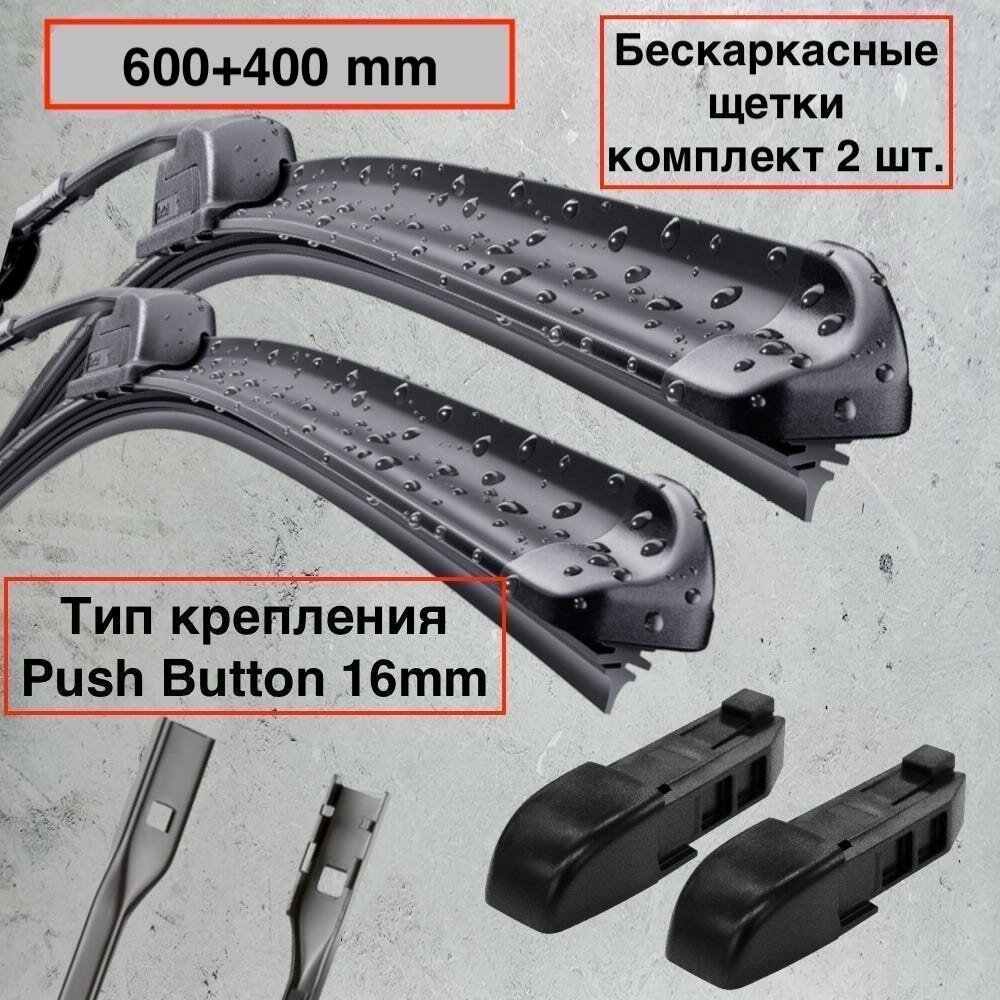 Бескаркасные щетки комплект Skoda Rapid I 2012 - 2017 (600-400 мм. Push Button16mm)