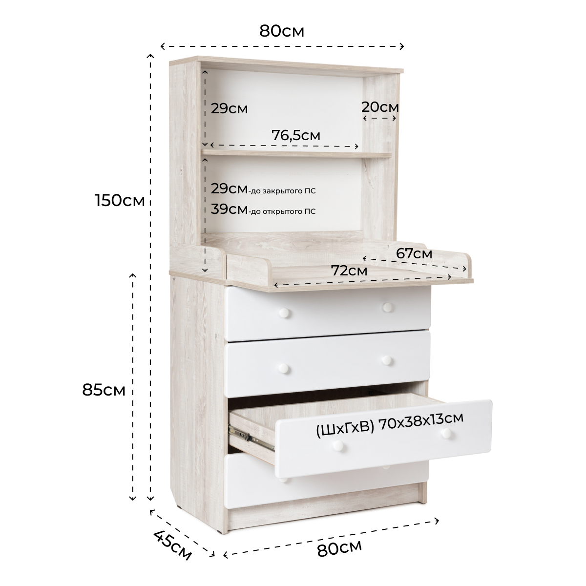 Пеленальный комод BEBIZARO BRISTOL SHIMO LIGHT (ШхГхВ) 80х45х150 см