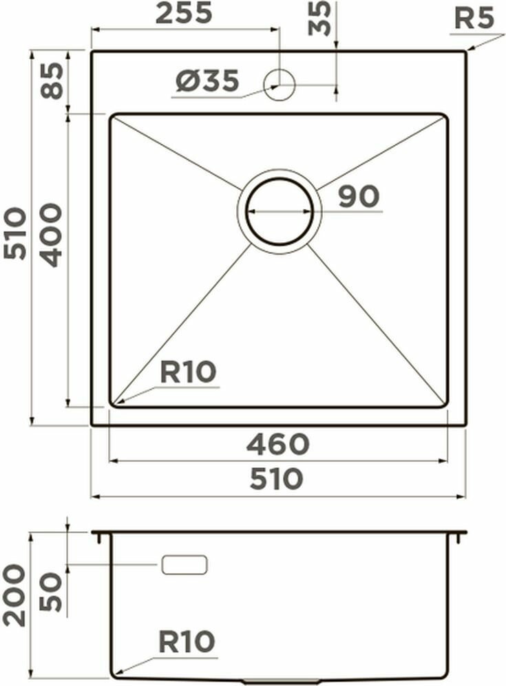 | Форма мойки | квадратная |
